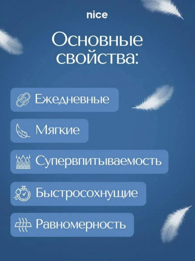 NICE — бренд женских гигиенических прокладок, разработанных по японской технологии. Прокладки обеспечивают комфорт, надёжную защиту и подходят для ежедневного использования. |