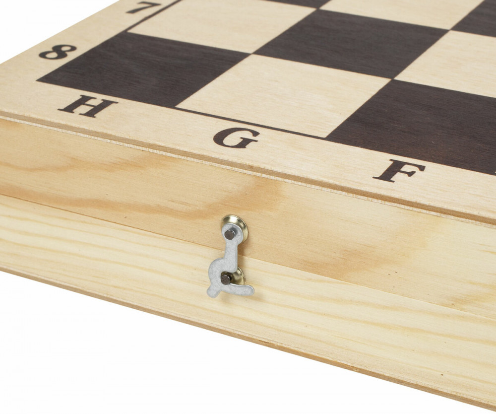 • раскладная доска для игры в шахматы (40×40 см, в сложенном виде — 40×20 см; размер клеток — 4,6×4,6 см);
