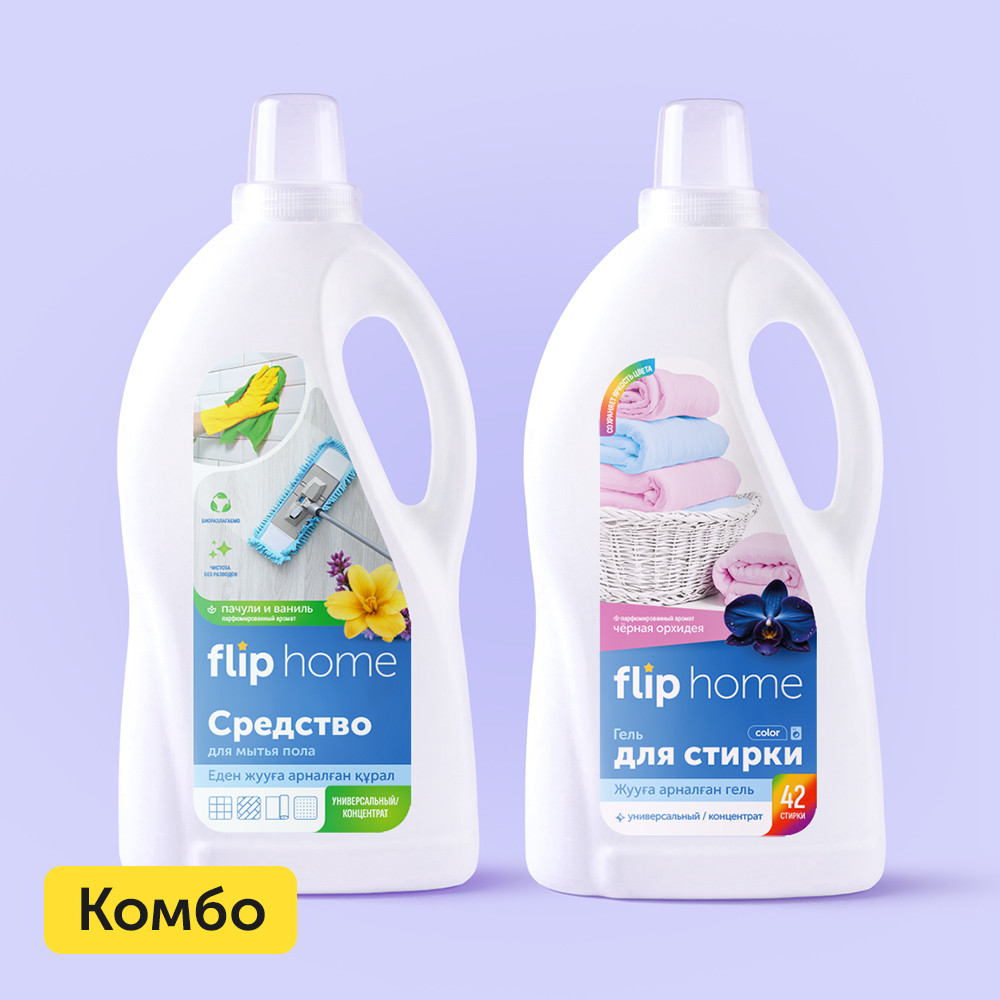 Комплект Flip Home объединяет два эффективных средства для ежедневной чистоты и уюта в доме: средство для мытья пола и гель для стирки. Продуманная формула каждого продукта обеспечивает безупречный результат, бережный уход за поверхностями и тканями, а также приятные, ненавязчивые ароматы.