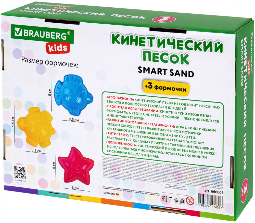 💳 Оплатить за товар можно при получении 🇰🇿 Есть бесплатная доставка по Казахстану от 1 дня 🎁 Копите бонусы с каждой покупки Серия: Kids Кинетический песок для лепки Brauberg Kids идеально подойдет для детского творчества. Игры с кинетическим песком развивают мелкую моторику рук, у детей развивается тактильная чувствительность, а также творческие способности и воображение. Безопасный кинетический песок по текстуре похож на влажный морской песок, но вместе с этим он абсолютно сухой, приятный на ощупь, воздушный и мягкий, прекрасно сохраняет форму во время лепки. |