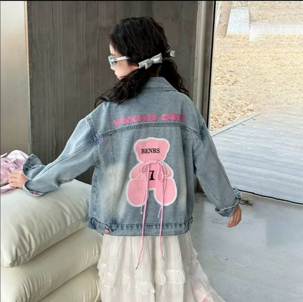 Джинсовая куртка на спине розовый «Bear»