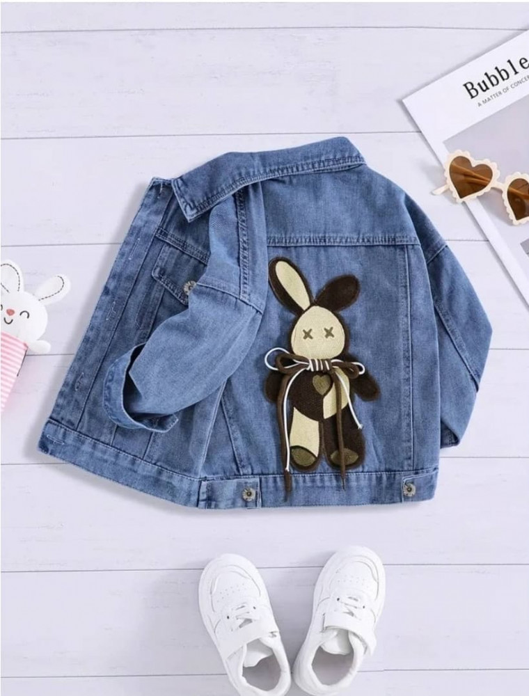Джинсовая куртка для девочек со шнурками и стразами «Заяц»