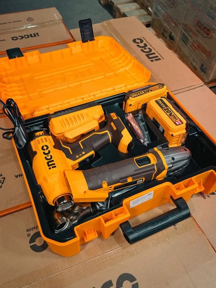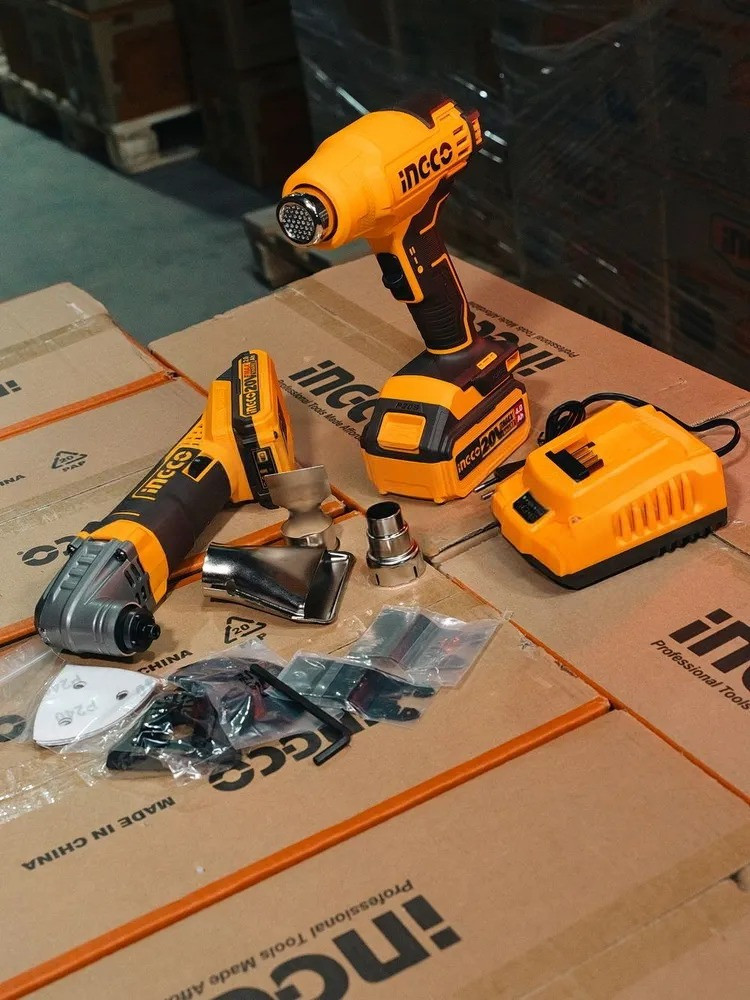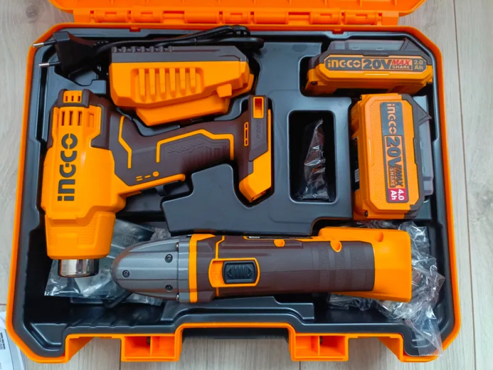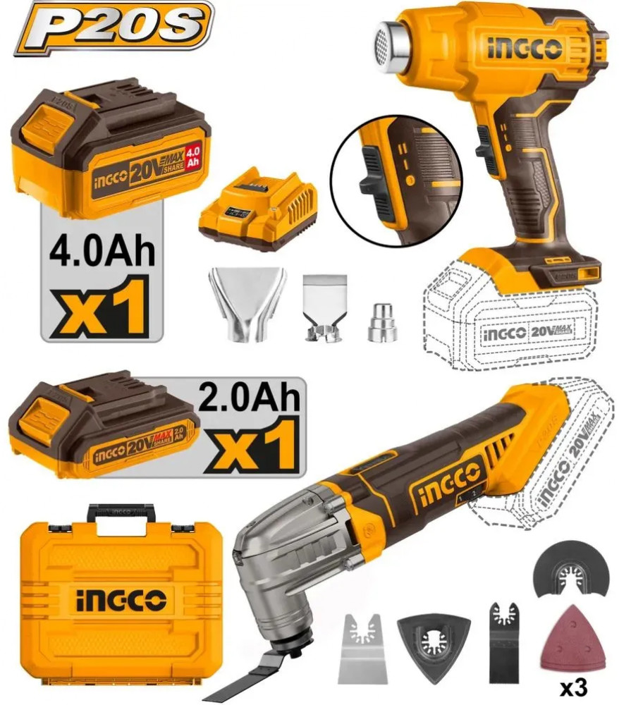 Набор электроинструментов INGCO COSLI230703, включает в себя аккумуляторный фен и аккумуляторный реноватор. Набор поставляется с двумя аккумуляторами 2Ач / 4Ач и зарядным устройством, в комплекте идут все необходимые насадки для реноватора и фена, что позволяет незамедлительно приступить к работе. Благодаря универсальной системе аккумуляторы можно использовать с любым инструментов серии Р20S.