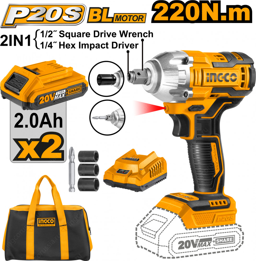 INGCO Аккумуляторный ударный гайковерт и шуруповерт-15% +1004