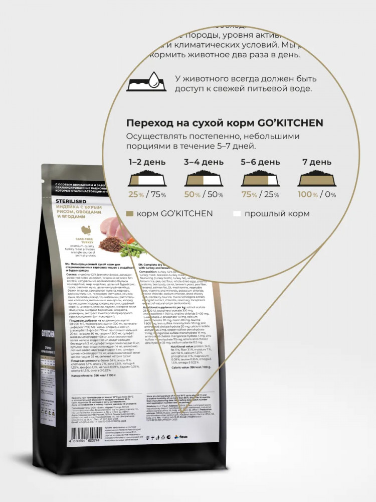 Go'kitchen Корм сухой для стерилизованных кошек с индейкой и бурым рисом «Sterilised Turkey»