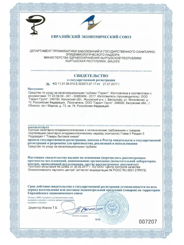 Гарант Средство по уходу за канализационными трубами гранулированное «Крот»-20% +46