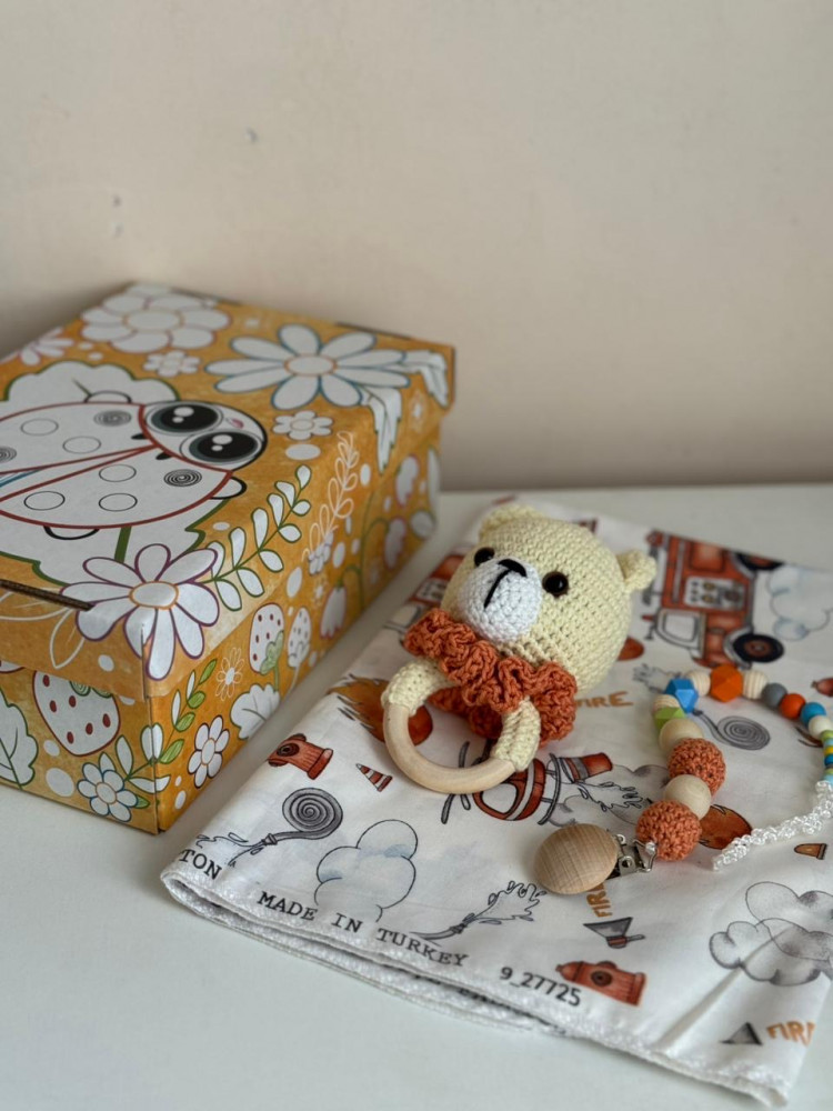 💳 Оплатить за товар можно при получении 🇰🇿 Есть бесплатная доставка по Казахстану от 1 дня 🎁 Копите бонусы с каждой покупки Мамы выбирают наши готовые наборы для новорожденных! Все сочетается, все безопасно и собрано с любовью! Набор для новорожденных: вязаная погремушка, держатель для соски и пеленка. |