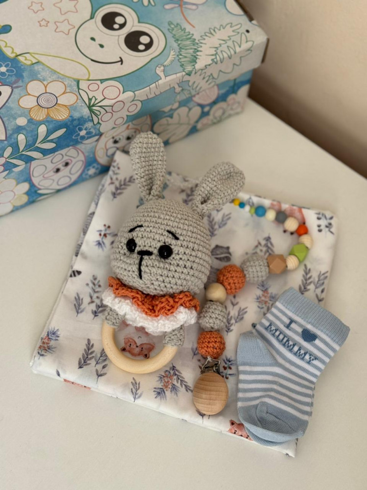 💳 Оплатить за товар можно при получении 🇰🇿 Есть бесплатная доставка по Казахстану от 1 дня 🎁 Копите бонусы с каждой покупки Идеальный подарок для малыша, красиво упакован и готов к вручению! В наборе: вязаная погремушка, держатель для соски, носочки и пеленка. Красиво, безопасно и со вкусом! |