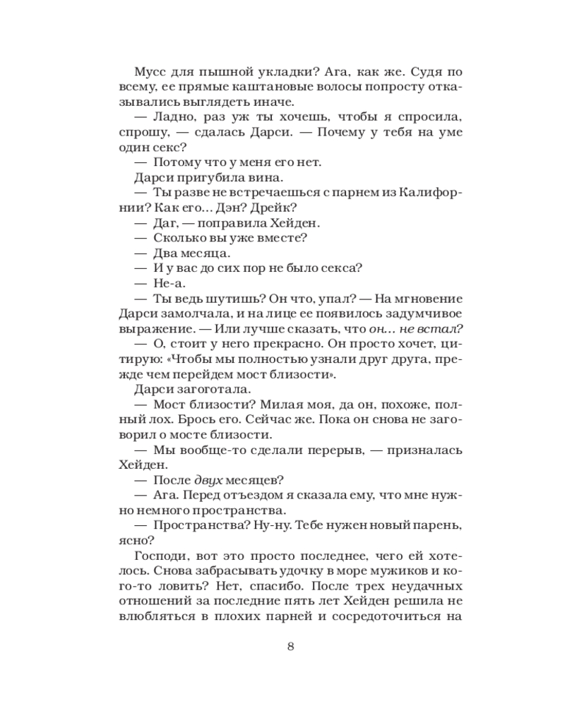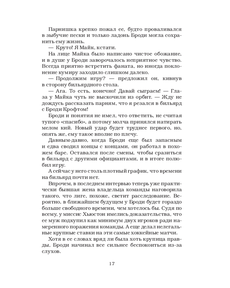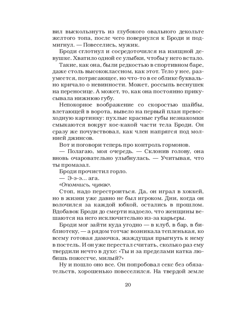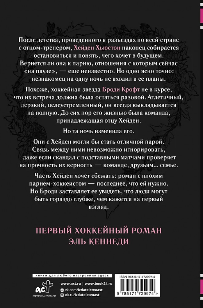 💳 Оплатить за товар можно при получении 🇰🇿 Есть бесплатная доставка по Казахстану от 1 дня 🎁 Копите бонусы с каждой покупки Серия: Хиты Эль Кеннеди После детства, проведенного в разъездах по всей стране с отцом-тренером, Хейден Хьюстон наконец собирается остановиться и понять, чего хочет в будущем. Вернется ли она к парню, отношения с которым сейчас «на паузе», — еще неизвестно. Но одно ясно точно: незнакомец на одну ночь не входил в ее планы. Похоже, хоккейная звезда Броди Крофт не в курсе, что их встреча должна была остаться разовой. Атлетичный, дерзкий, целеустремленный, он всегда выкладывается на полную. До сих пор его жизнью была команда, принадлежащая отцу Хейден. |