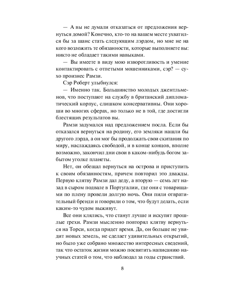 💳 Оплатить за товар можно при получении 🇰🇿 Есть бесплатная доставка по Казахстану от 1 дня 🎁 Копите бонусы с каждой покупки Серия: Шарм После смерти невесты молодой шотландский дворянин Кай Рамзи покинул отчий дом. Годами он странствовал по свету, исследовал древние руины, изымал бесценные артефакты... Но всё хорошее рано или поздно заканчивается, и настал день, когда Кай вынужден вернуться на родину. Всю свою жизнь Сигни Матисон посвятила заботе о жителях островов и их пожилом правителе. Но старый лэрд оказался на смертном одре, и Сигни приходится призвать домой его наследника — бывшего жениха ее покойной сестры. |