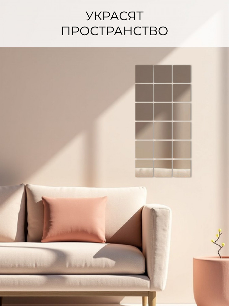 Гибкое акриловое панно создаст объемный и интересный эффект на любой гладкой поверхности. Оно надежно держится на натяжных потолках в спальне или обоях в гостиной. Вы сможете преобразить все предметы мебели, от шкафа до комода, а также любые поверхности, например, стену или даже холодильник. Декоративное настенное зеркало на входную дверь — это практичный и украшающий элемент для любого интерьера. Выбирайте нашу коллекцию зеркальных наклеек как украшение на стену или интерьерное панно, чтобы создать уникальный интерьер, отражающий вашу индивидуальность и разные аспекты вашего жизненного пространства.