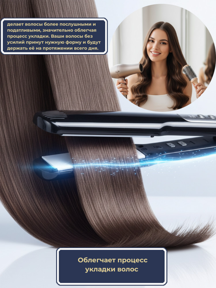 Несмываемый термоспрей действует как термозащитный крем, кондиционер-спрей и текстурайзер одновременно. Он уплотняющий и разглаживающий, предотвращает спутывания, облегчает расчёсывание и устраняет пушистость. Благодаря антистатическому эффекту волосы становятся гладкими, послушными и сохраняют аккуратный объём. Формула с кератиновым и питательным комплексом бережно ухаживает за кончиками, снижая риск секущихся и ломких участков.