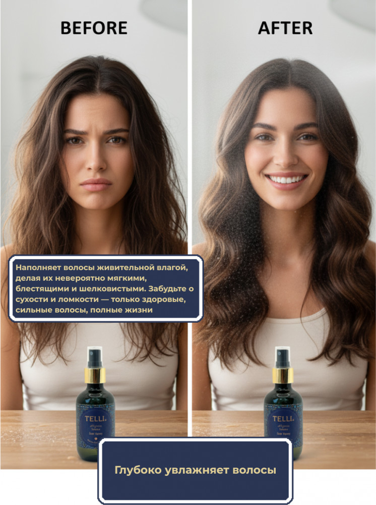 Спрей с ароматом парфюма раскрывается вкусно и мягко, создавая лёгкое облако ухоженности после каждого применения. Он обеспечивает стойкий результат, защищает от солнца, ветра и термовоздействия. Уходовый эффект проявляется уже после первого распыления: волосы легко расчёсываются, меньше спутываются, становятся упругими и блестящими.