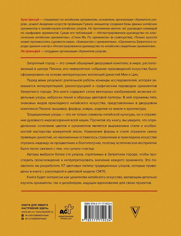 💳 Оплатить за товар можно при получении 🇰🇿 Есть бесплатная доставка по Казахстану от 1 дня 🎁 Копите бонусы с каждой покупки Серия: Искусство. Подарочная энциклопедия Запретный город — это самый обширный дворцовый комплекс в мире, расположенный в центре Пекина, его невероятное собрание произведений искусства было сформировано на основе императорских коллекций династий Мин и Цин. Перед вами результат длительной работы команды исследователей, которая занимается интерпретацией, реконструкцией и графическим переводом орнаментов Запретного города. Эта книга содержит сотни векторных изображений, включая отдельные узоры, наброски линий и образцы цветовой палитры. В ней отражены пять знаковых видов прикладного китайского искусства, представленных в дворцовом комплексе Пекина: вышивка, фарфор, ковры, изделия из эмали и архитектура. |