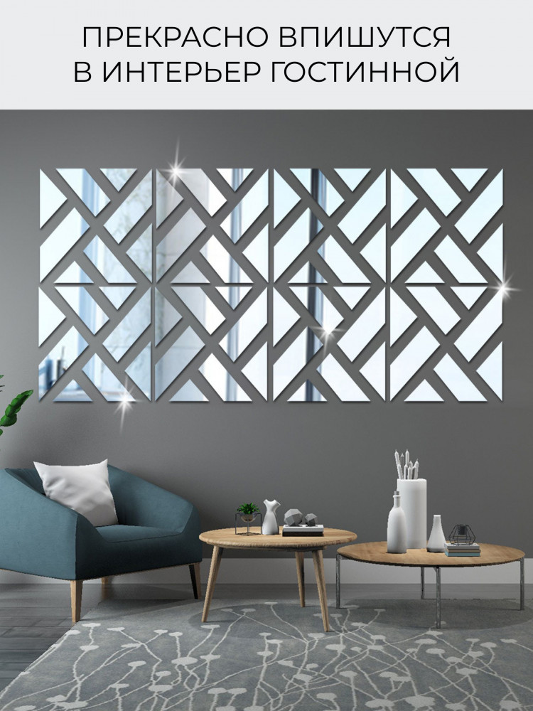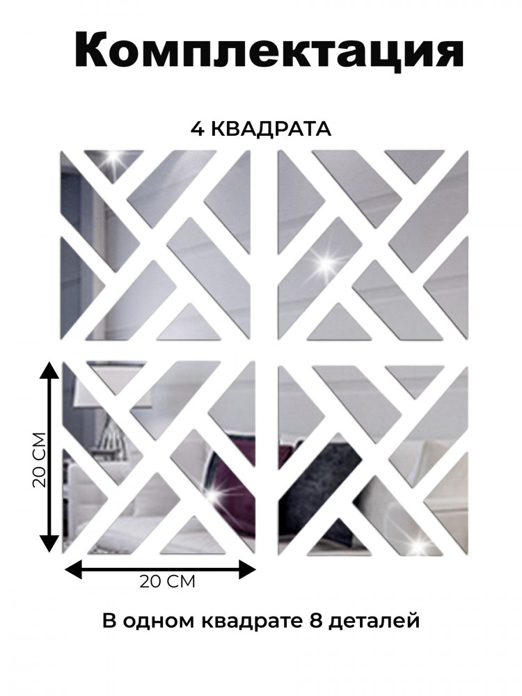Набор наклеек зеркальных интерьерных на стену «Квадрат»