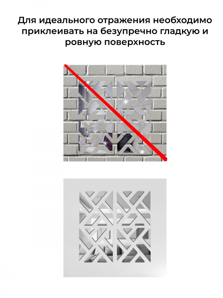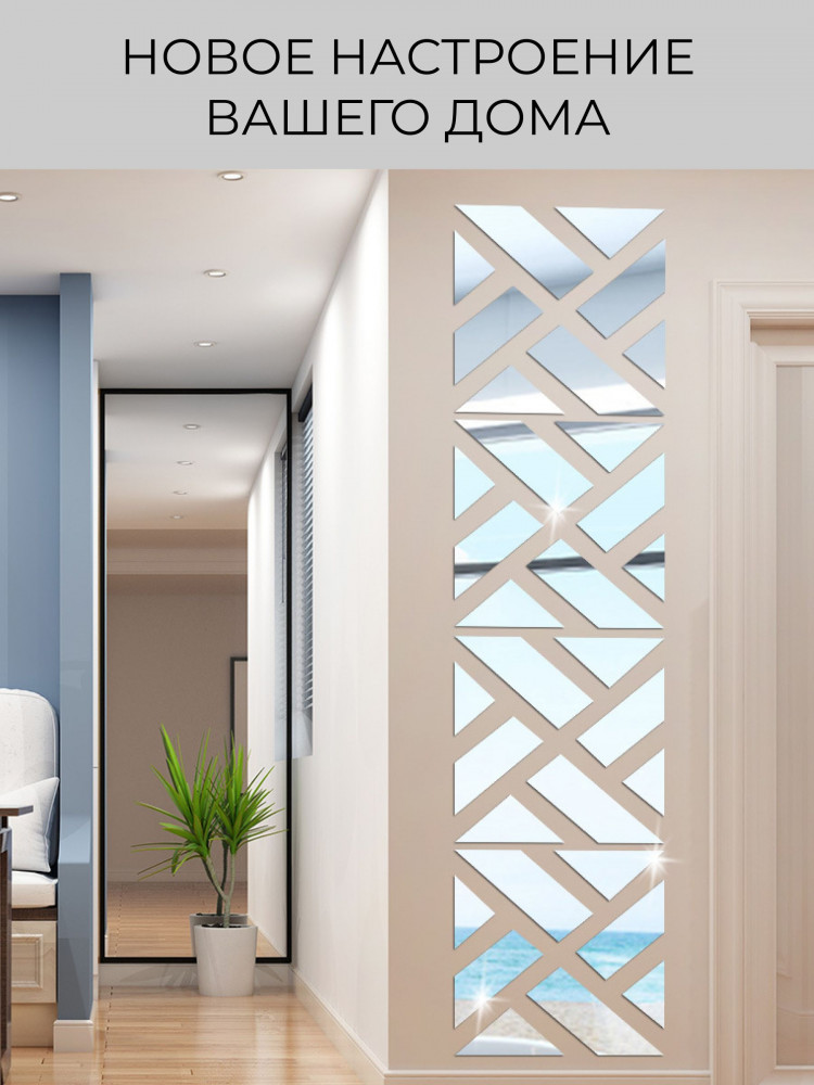 Гибкое акриловое панно создаст объемный и интересный эффект на любой гладкой поверхности. Оно надежно держится на натяжных потолках в спальне или обоях в гостиной. Вы сможете преобразить все предметы мебели, от шкафа до комода, а также любые поверхности, например, стену или даже холодильник. Декоративное настенное зеркало на входную дверь — это практичный и украшающий элемент для любого интерьера. Выбирайте нашу коллекцию зеркальных наклеек как украшение на стену или интерьерное панно, чтобы создать уникальный интерьер, отражающий вашу индивидуальность и разные аспекты вашего жизненного пространства.