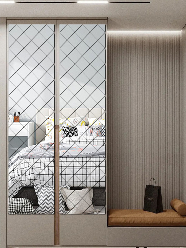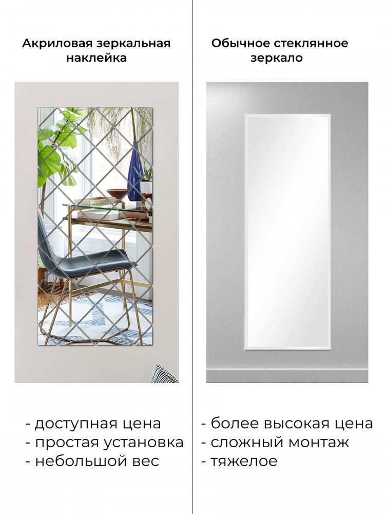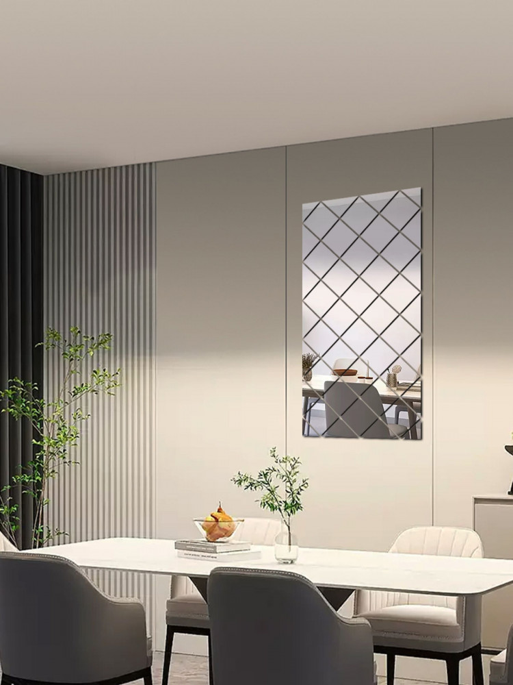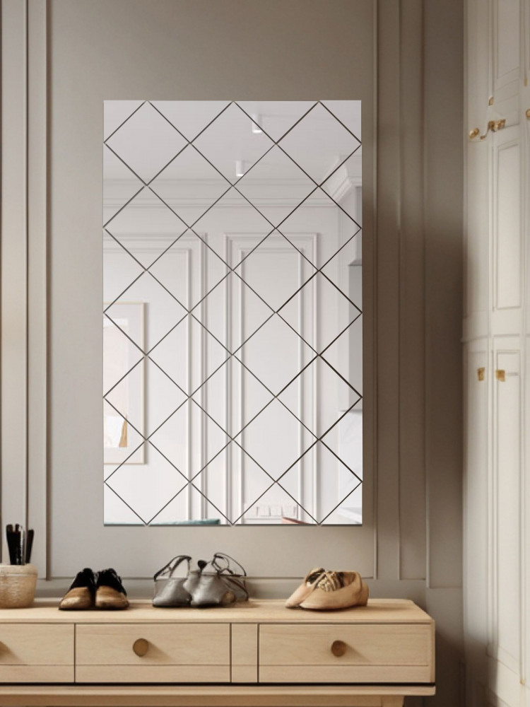Гибкое акриловое панно создаст объемный и интересный эффект на любой гладкой поверхности. Оно надежно держится на натяжных потолках в спальне или обоях в гостиной. Вы сможете преобразить все предметы мебели, от шкафа до комода, а также любые поверхности, например, стену или даже холодильник. Декоративное настенное зеркало на входную дверь — это практичный и украшающий элемент для любого интерьера. Выбирайте нашу коллекцию зеркальных наклеек как украшение на стену или интерьерное панно, чтобы создать уникальный интерьер, отражающий вашу индивидуальность и разные аспекты вашего жизненного пространства.