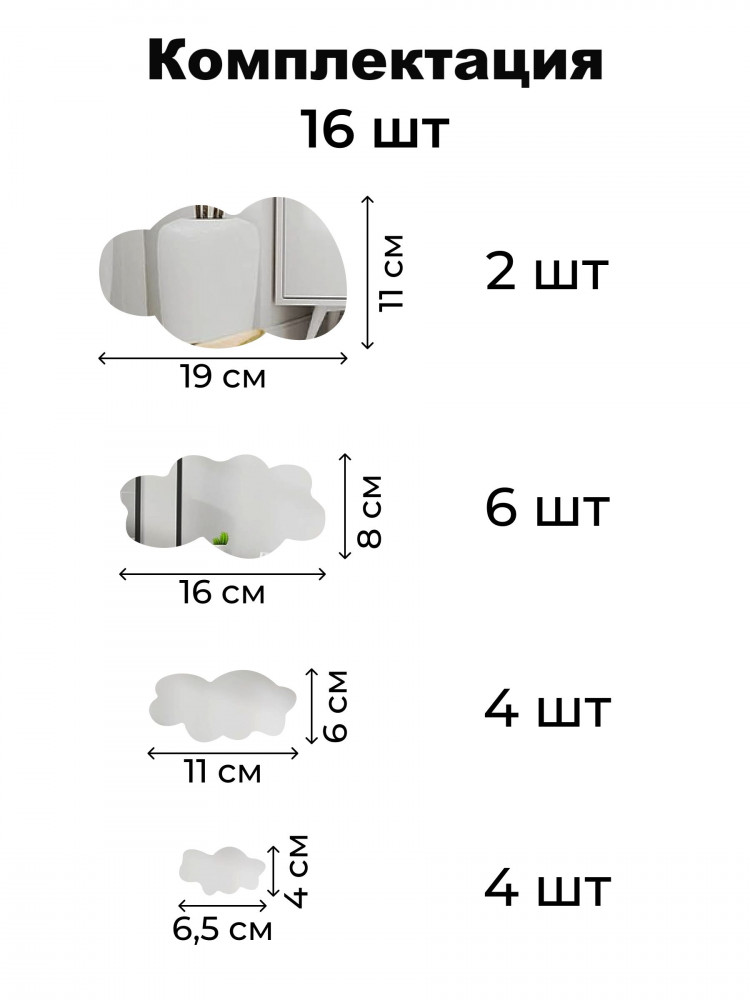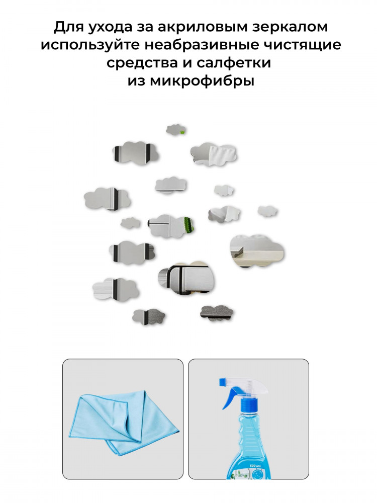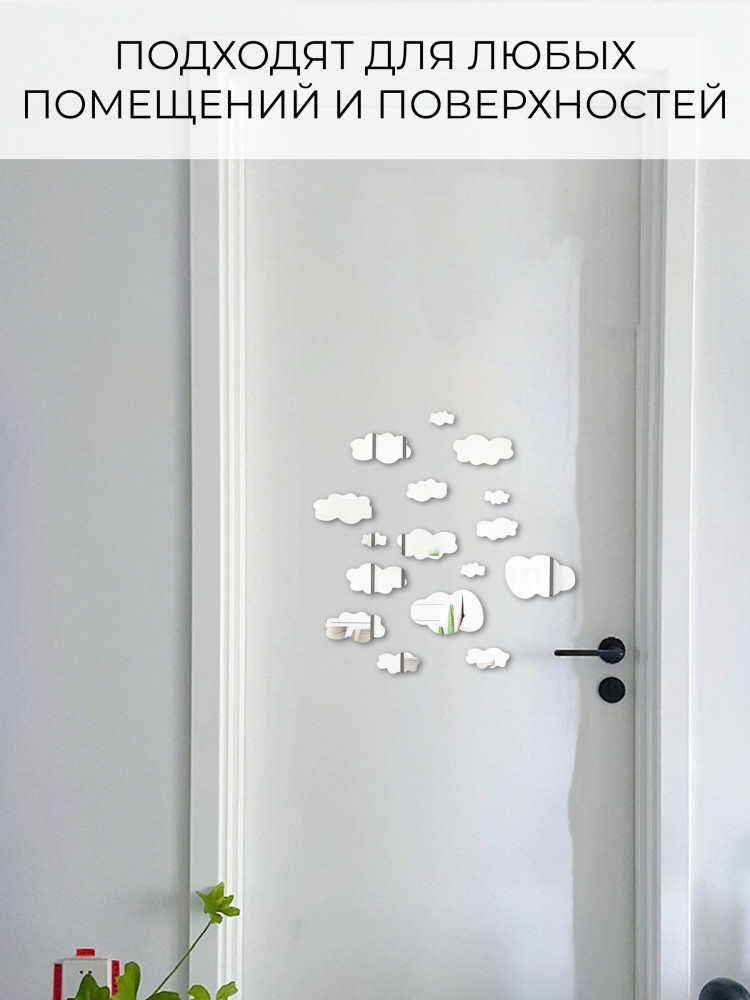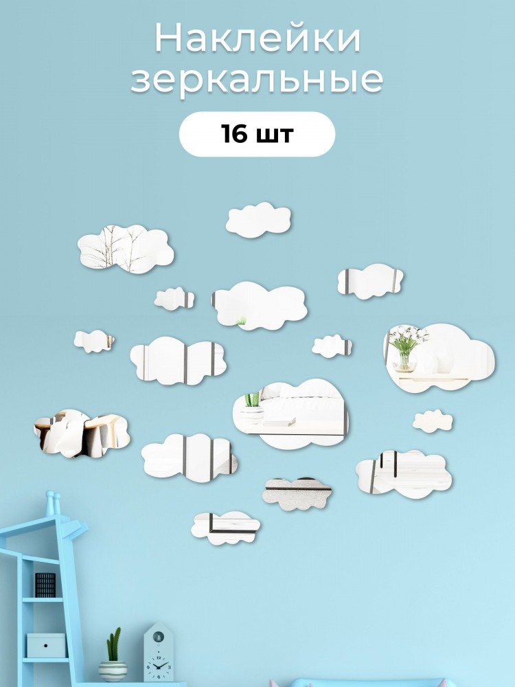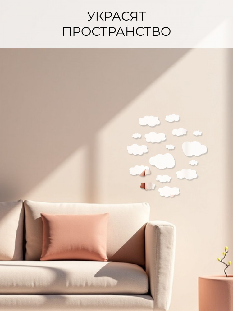 Набор наклеек зеркальных интерьерных на стену «Облака»