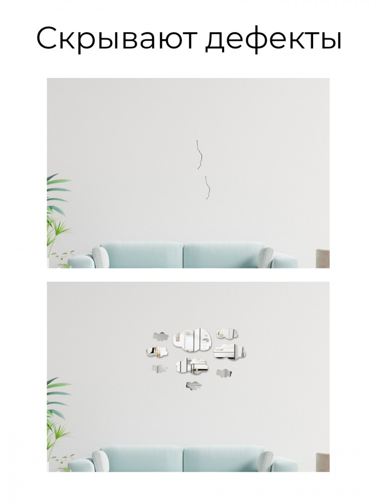 Гибкое акриловое панно создаст объемный и интересный эффект на любой гладкой поверхности. Оно надежно держится на натяжных потолках в спальне или обоях в гостиной. Вы сможете преобразить все предметы мебели, от шкафа до комода, а также любые поверхности, например, стену или даже холодильник. Декоративное настенное зеркало на входную дверь — это практичный и украшающий элемент для любого интерьера. Выбирайте нашу коллекцию зеркальных наклеек как украшение на стену или интерьерное панно, чтобы создать уникальный интерьер, отражающий вашу индивидуальность и разные аспекты вашего жизненного пространства.