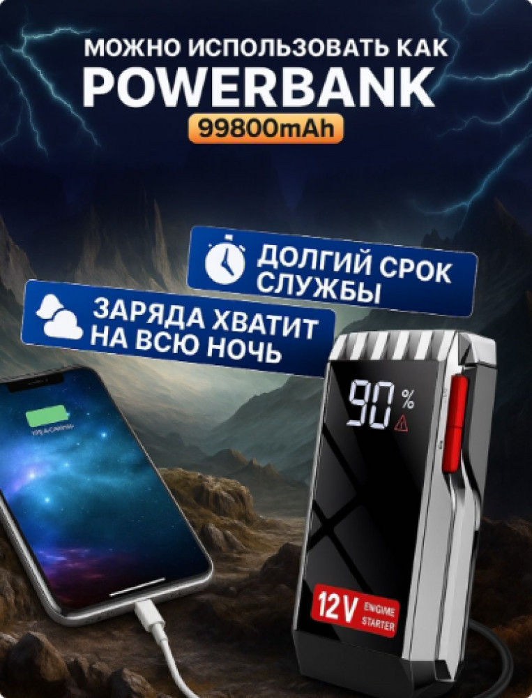💳 Оплатить за товар можно при получении 🇰🇿 Есть бесплатная доставка по Казахстану от 1 дня 🎁 Копите бонусы с каждой покупки Компактное устройство для быстрого запуска автомобиля, мотоцикла, квадроцикла или катера при разряженном аккумуляторе. Заменяет провода «прикуривания», работает как пауэрбанк для зарядки гаджетов и незаменим в дороге, на даче, рыбалке или зимой в мороз. |