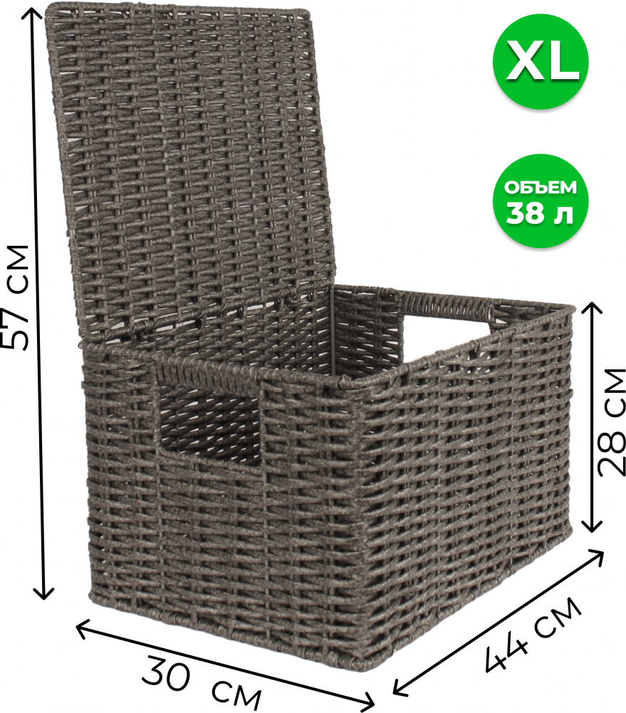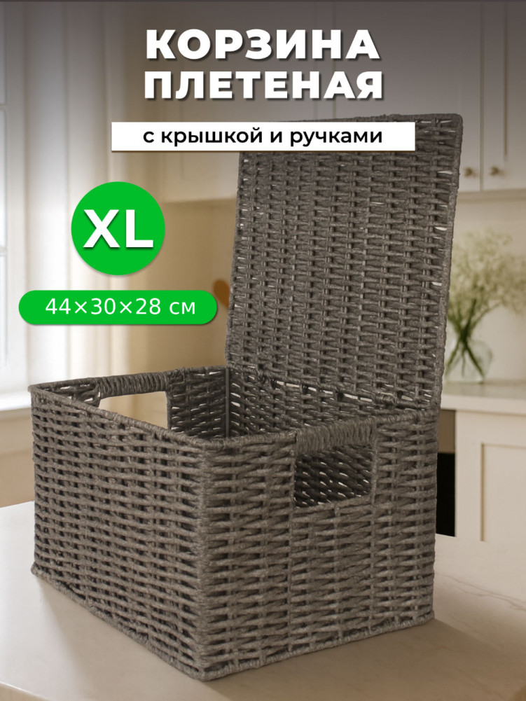 Корзина для хранения плетеная с крышкой и ручками XL