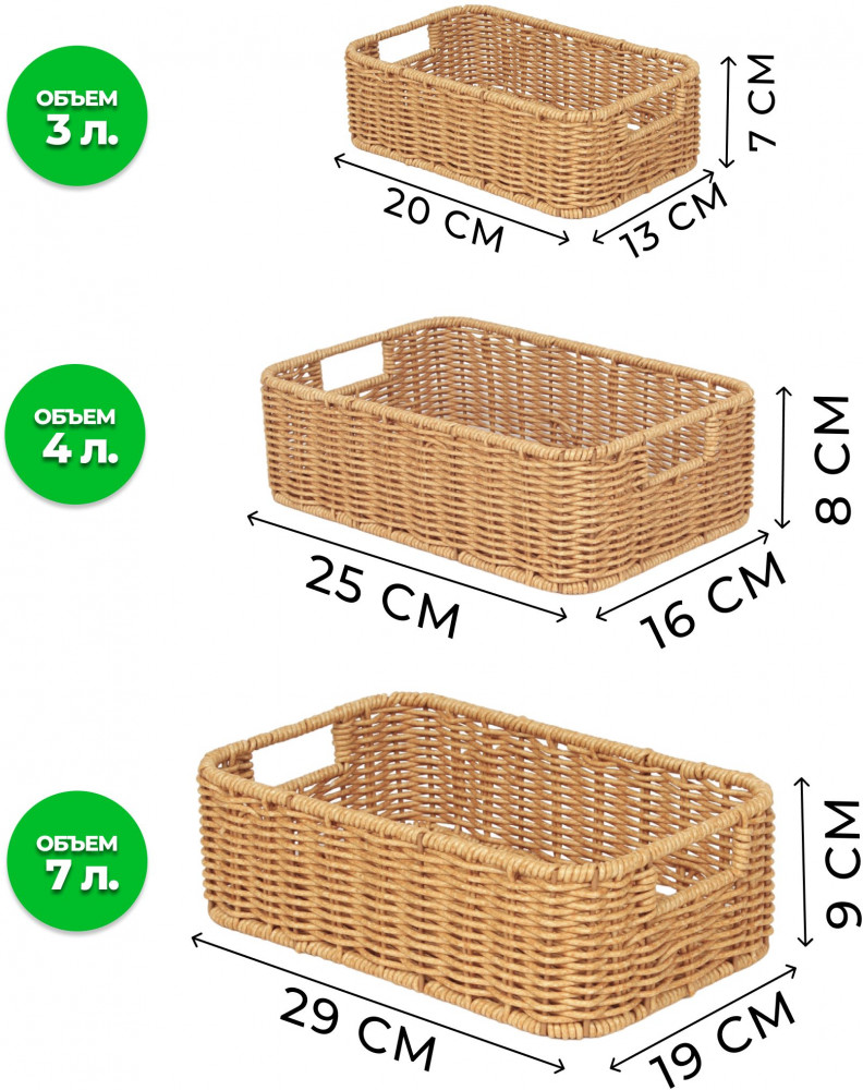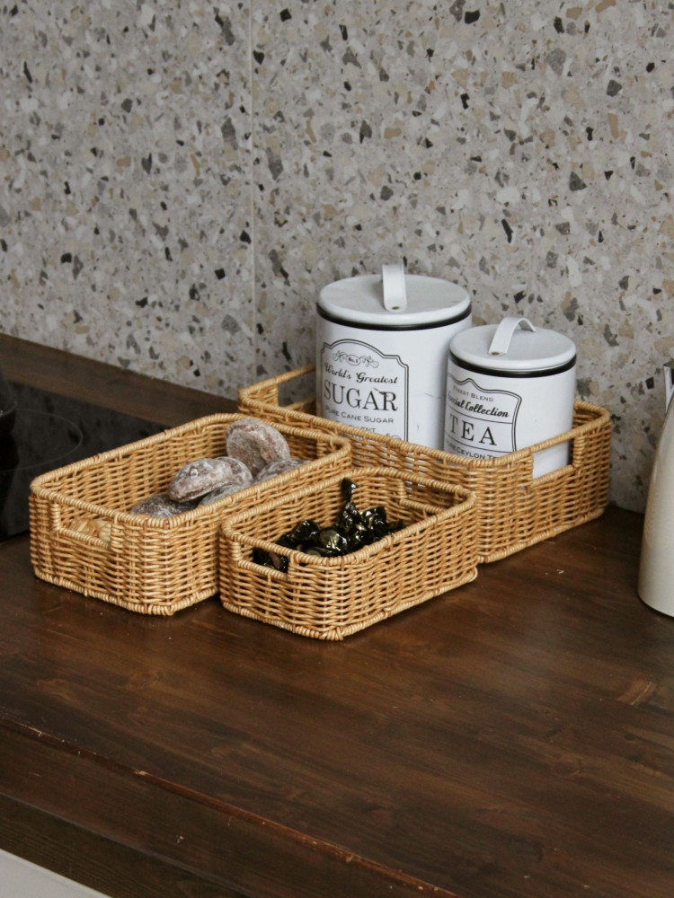 Набор корзин для хранения плетеных с ручками