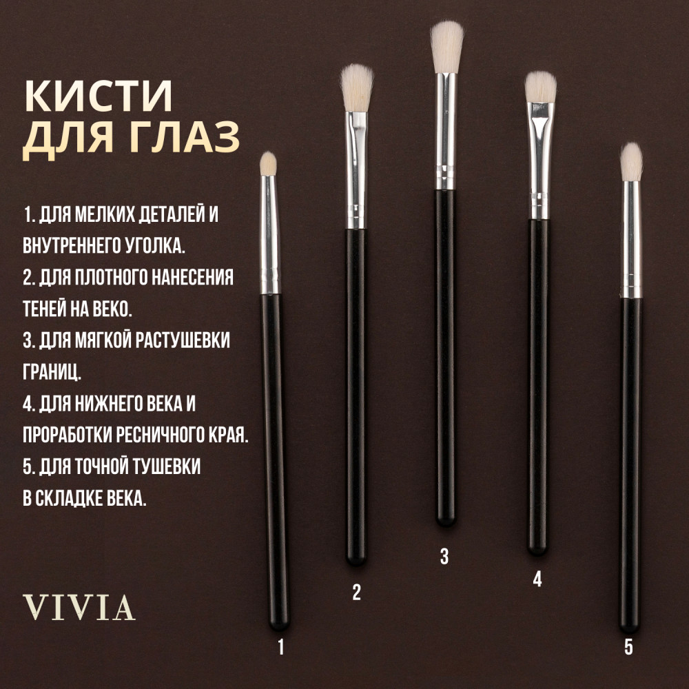 Vivia Набор кистей из натурального ворса «Black 15»+98 натуральный ворс мягкость качество