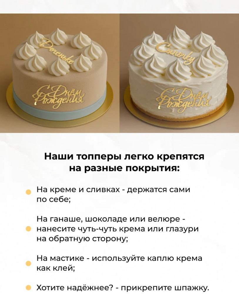 💳 Оплатить за товар можно при получении 🇰🇿 Есть бесплатная доставка по Казахстану от 1 дня 🎁 Копите бонусы с каждой покупки Подготовка к праздникам — это весьма непростое занятие, которое требует много времени. Подчеркнуть особую атмосферу торжества и без лишних хлопот украсить торт помогут топперы. Просто вставьте украшение в сладкое угощение — это добавит яркости вашему мероприятию и сделает его запоминающимся. |
