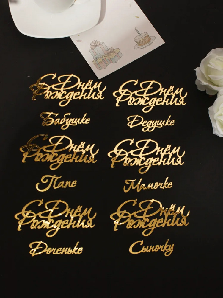 Набор топперов зеркальных «С Днем рождения»+117
