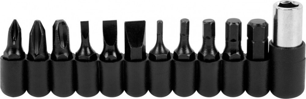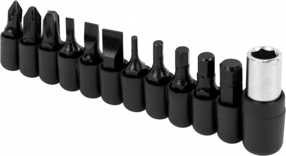 • магнитный соединитель + 11 БИТ в держателе из ПВХ (биты: H2, H3, H4, H5, H6; 3, 5, 7; PH1, PH2, PH3);