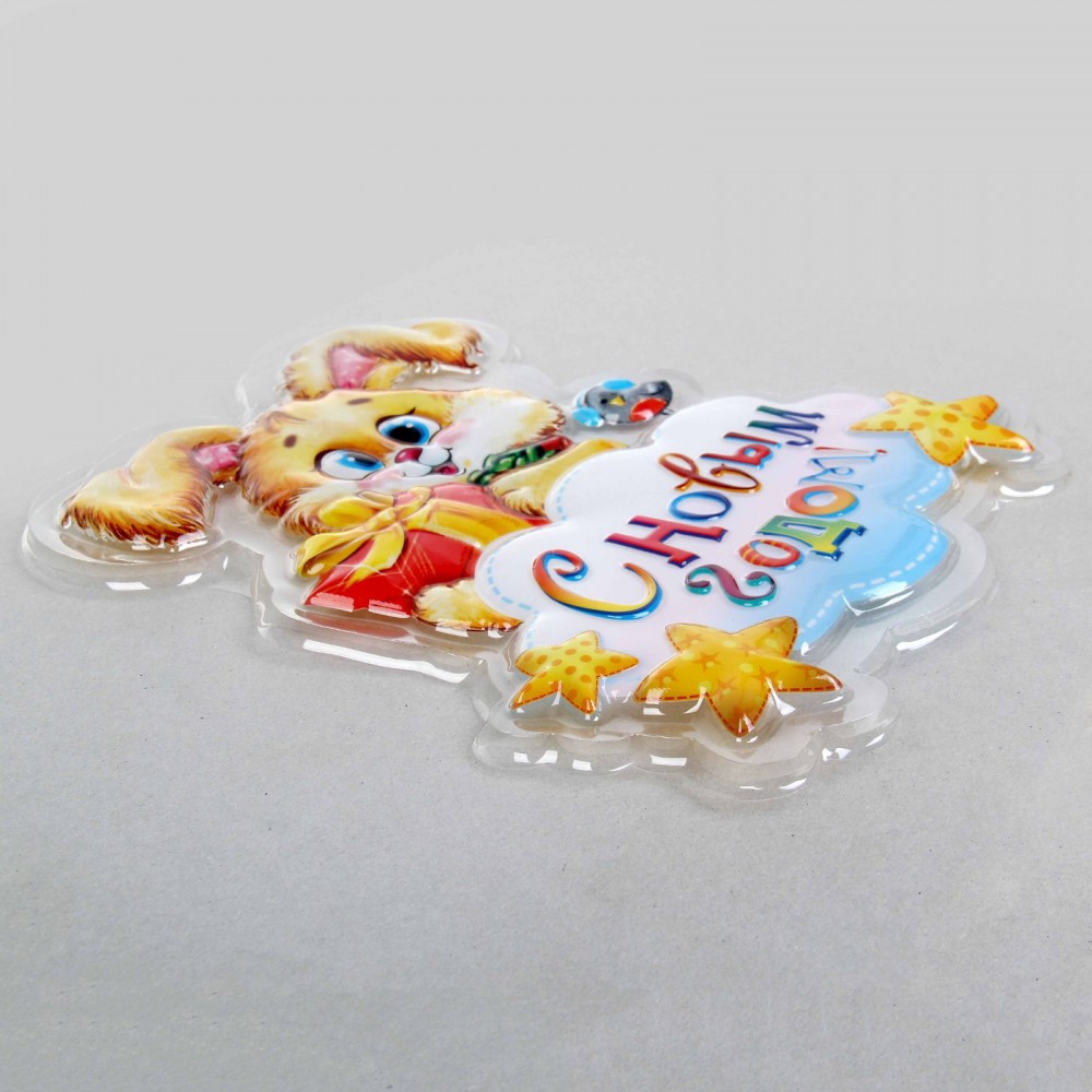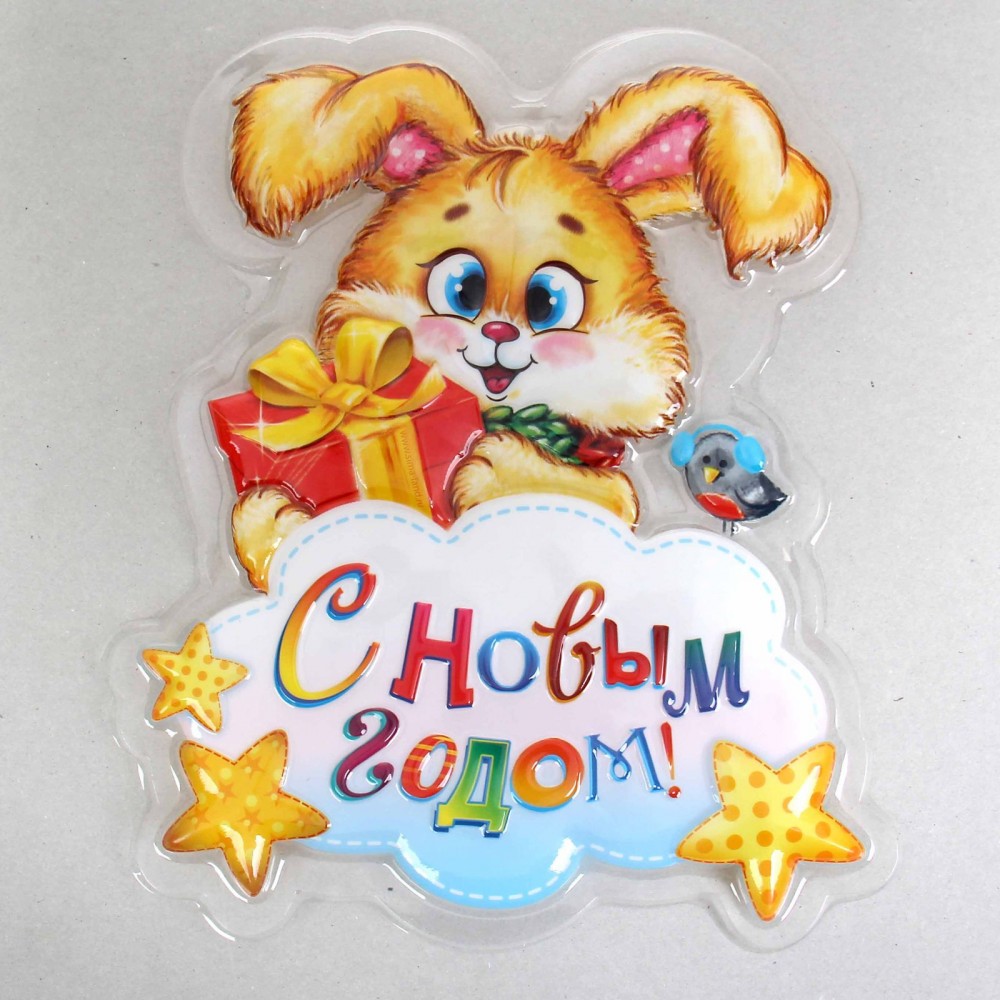 Панно декоративное «Зайчик с подарком» с новогодней тематикой вы не только преобразите внутренний антураж помещения, но и создадите волшебную сказку и новогоднее настроение! Панно выполнено из лёгкого прозрачного пластика, который можно прикрепить как на стену, так и на зеркало или стекло.