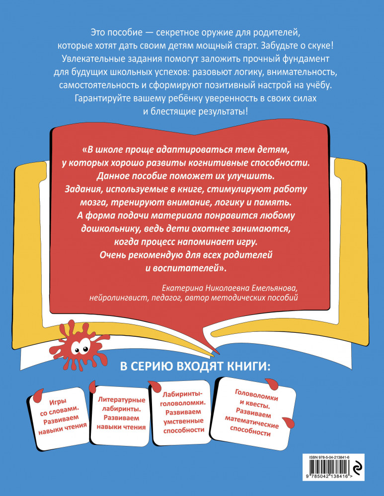 💳 Оплатить за товар можно при получении 🇰🇿 Есть бесплатная доставка по Казахстану от 1 дня 🎁 Копите бонусы с каждой покупки Серия: Игротека для ума Интерактивная рабочая тетрадь, разработанная практикующим нейропсихологом, поможет активизировать умственные способности и превратит обучение в увлекательную игру. На каждой странице ребенку предстоит решать головоломки, судоку, проходить лабиринты, шифровки, графические диктанты, искать спрятанные цифры. Упражнения, собранные в книге, помогут закрепить образ цифр, развить навыки счета и сравнения, распознавание закономерностей, улучшить логическое и пространственное мышление, внимание, память и устойчивую концентрацию. |