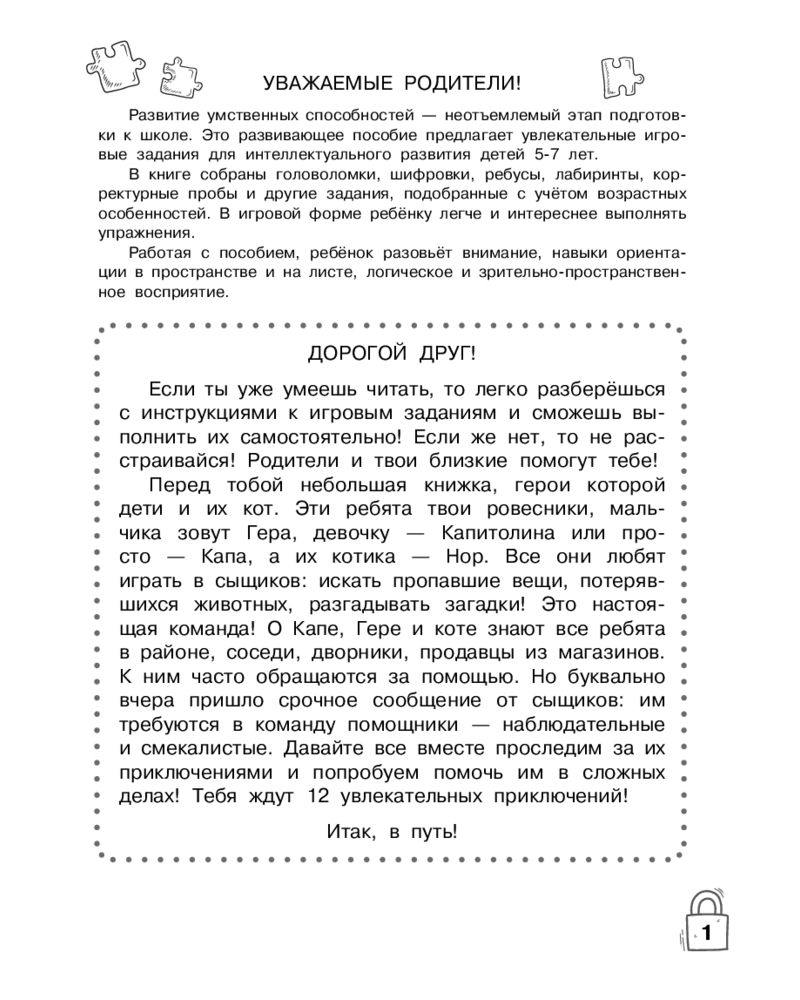 💳 Оплатить за товар можно при получении 🇰🇿 Есть бесплатная доставка по Казахстану от 1 дня 🎁 Копите бонусы с каждой покупки Серия: Игротека для ума Интерактивная рабочая тетрадь, разработанная практикующим нейропсихологом, поможет активизировать умственные способности и превратит обучение в увлекательную игру. На каждой странице ребенку предстоит проходить лабиринты, решать ребусы, шифровки, выполнять различные графические задания, искать спрятанные предметы. Упражнения, собранные в книге, помогут развить логическое мышление, внимание, зрительно-пространственные навыки и воображение, усидчивость, а также улучшить мелкую моторику. |