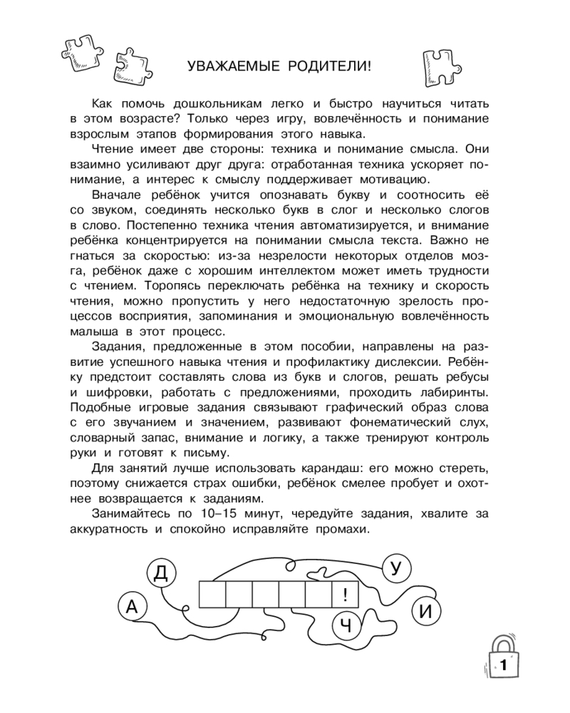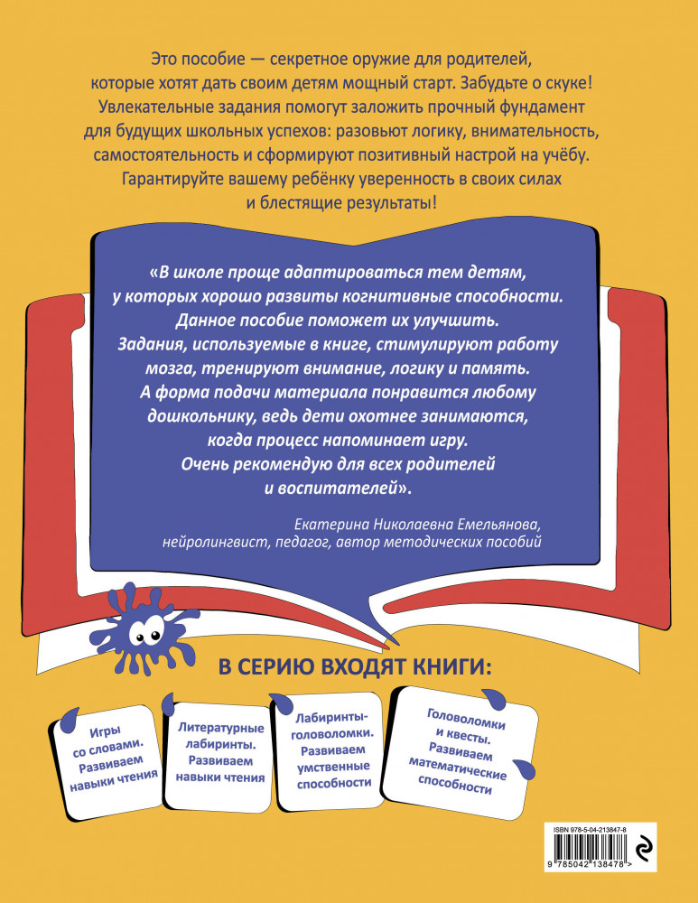 💳 Оплатить за товар можно при получении 🇰🇿 Есть бесплатная доставка по Казахстану от 1 дня 🎁 Копите бонусы с каждой покупки Серия: Игротека для ума Интерактивная рабочая тетрадь, разработанная практикующим нейропсихологом, поможет активизировать умственные способности и превратить обучение в увлекательную игру. На каждой странице дошкольнику предстоит собирать слова из букв и слогов, разгадывать ребусы и шифры, прокладывать путь в лабиринтах, заполнять кроссворды, составлять предложения. Упражнения, собранные в книге, помогут потренировать слияние слогов, автоматизировать навыки чтения, повысить внимание, улучшить мелкую моторику и логическое мышление, а также поспособствуют расширению словарного запаса и пониманию смысла прочитанного. |