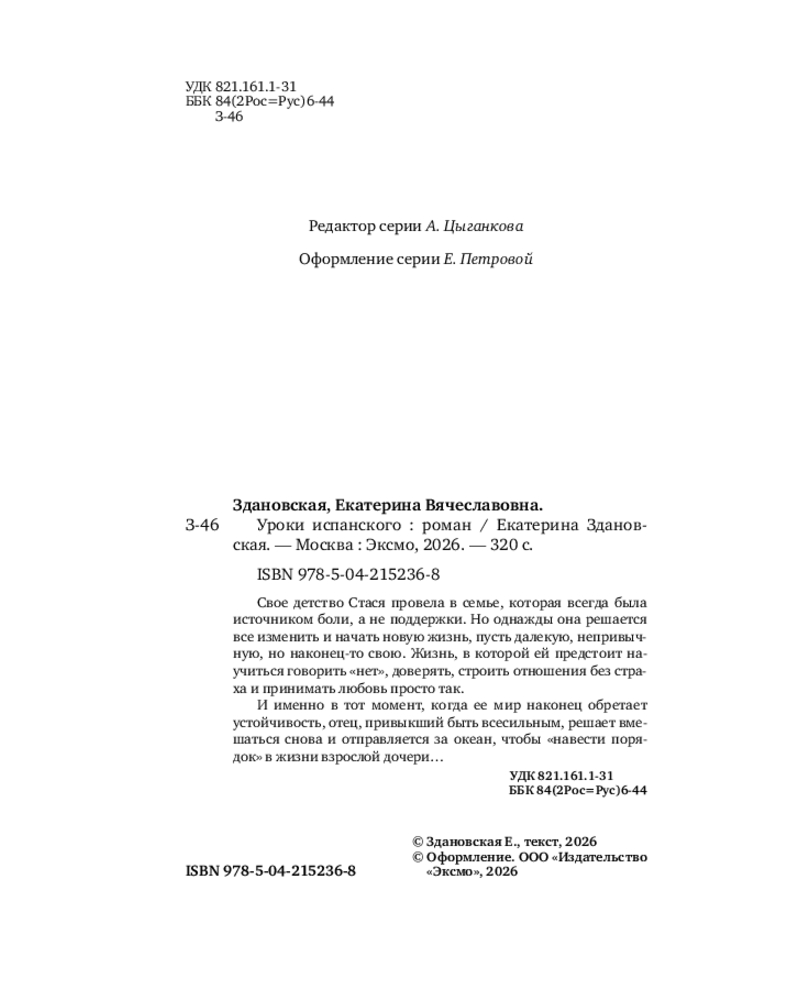 💳 Оплатить за товар можно при получении 🇰🇿 Есть бесплатная доставка по Казахстану от 1 дня 🎁 Копите бонусы с каждой покупки Серия: Почти счастливые люди Проза освобождения от родительского абьюза, терапевтичное чтение для миллениалов и просто история обычной девушки, которая не побоялась быть собой и сказать «нет» самым близким — всё это «Уроки испанского» Екатерины Здановской. |