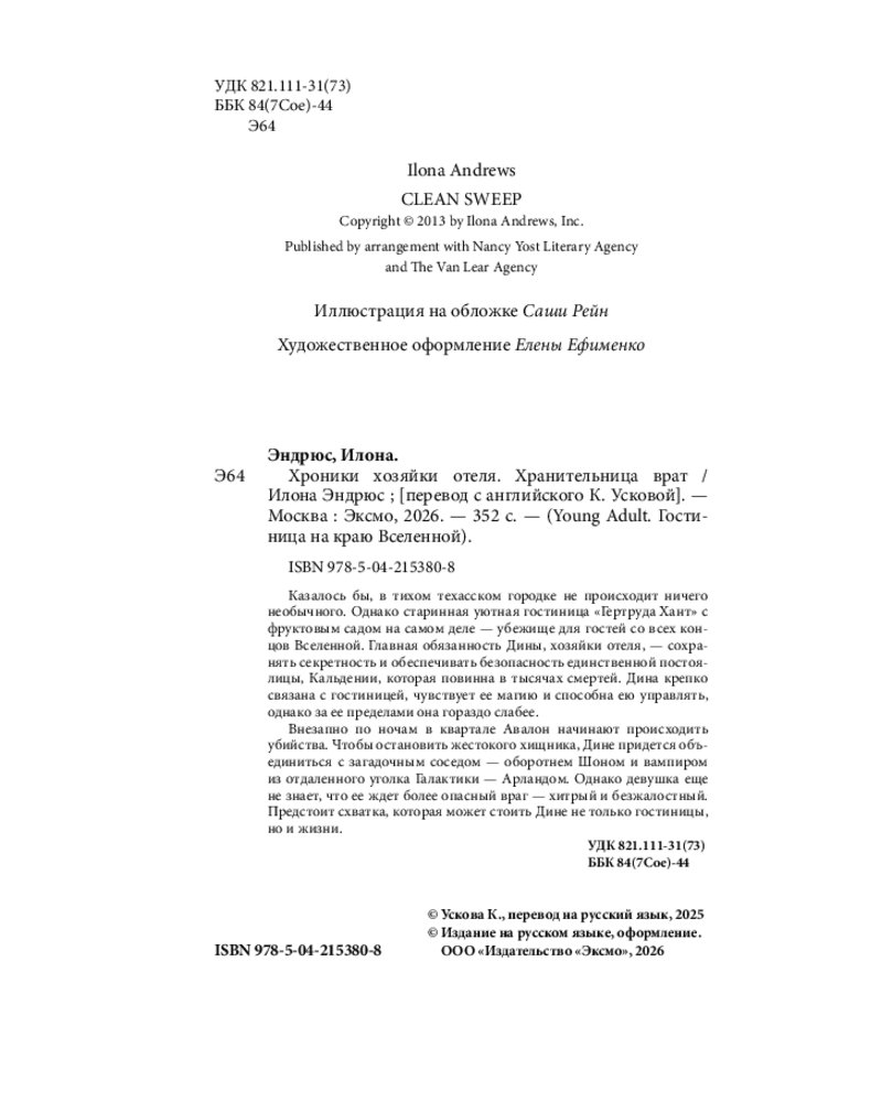 💳 Оплатить за товар можно при получении 🇰🇿 Есть бесплатная доставка по Казахстану от 1 дня 🎁 Копите бонусы с каждой покупки Серия: Young Adult. Гостиница на краю Вселенной «Хроники хозяйки отеля. Хранительница врат» — популярное фэнтези автора бестселлеров New York Times Илоны Эндрюс, по которому есть одноименная графическая адаптация. |
