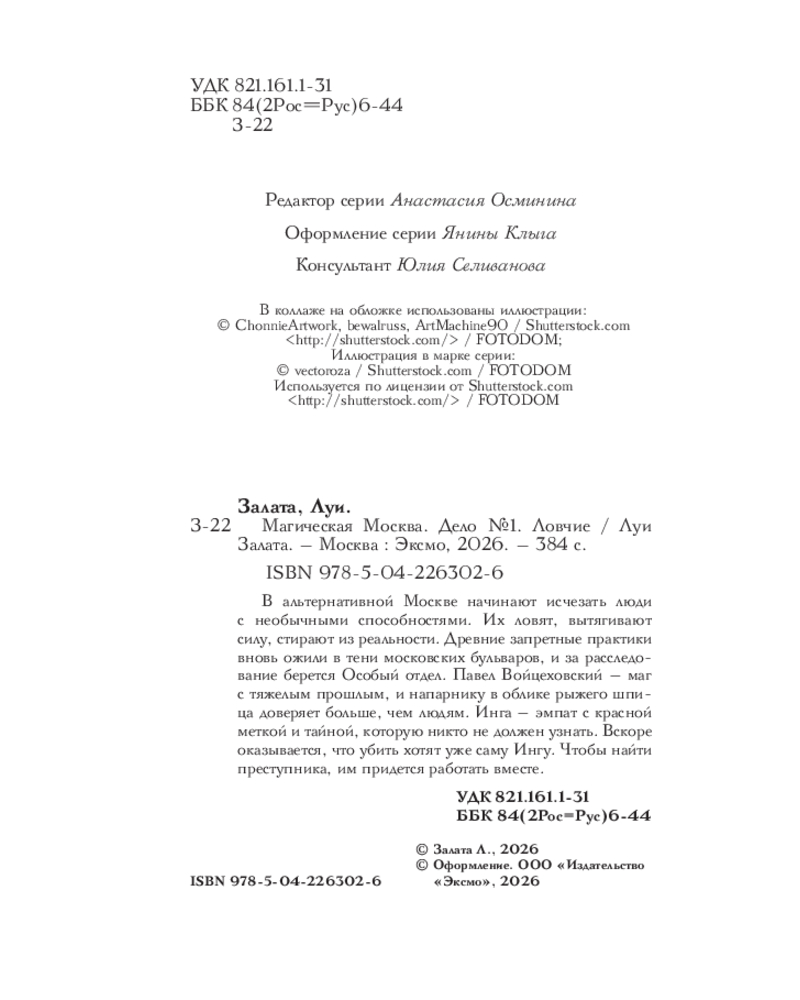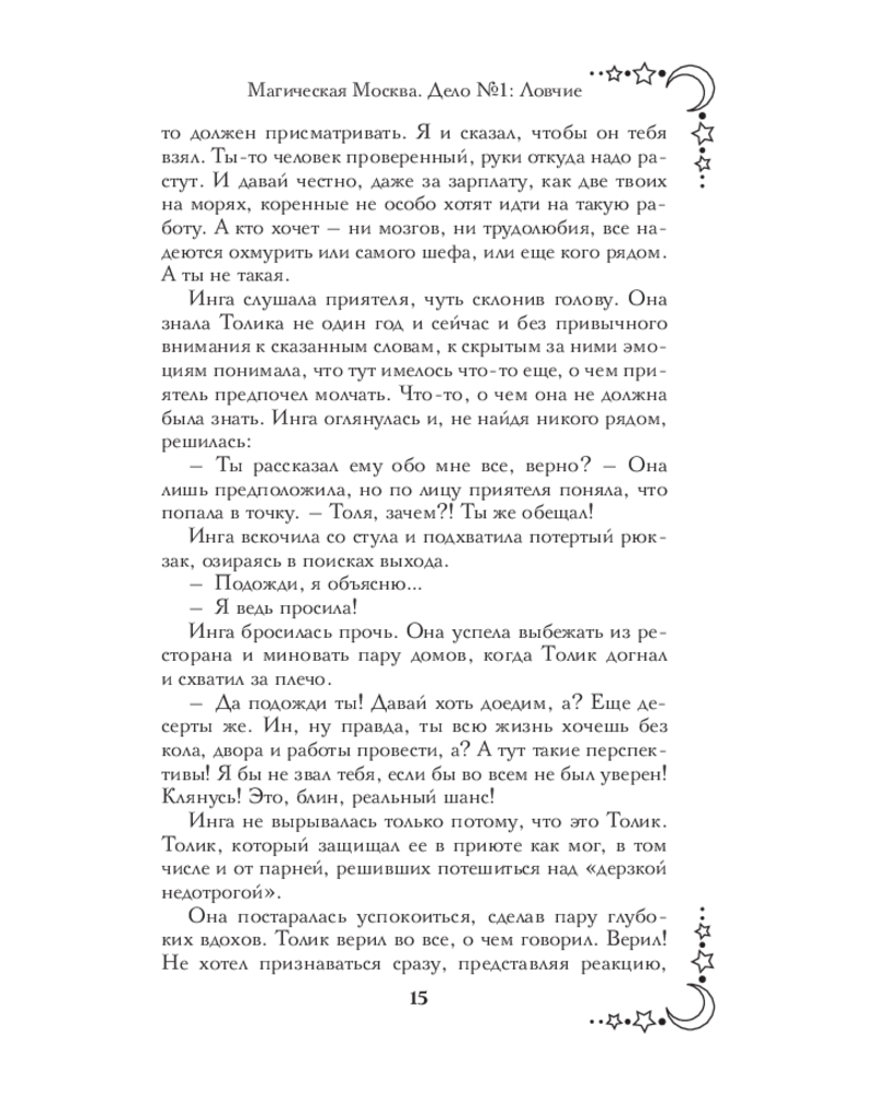 💳 Оплатить за товар можно при получении 🇰🇿 Есть бесплатная доставка по Казахстану от 1 дня 🎁 Копите бонусы с каждой покупки Серия: Магическая Москва. Загадочные расследования В альтернативной Москве начинают исчезать люди с необычными способностями. Их ловят, вытягивают силу, стирают из реальности. Древние запретные практики вновь ожили в тени московских бульваров, и за расследование берется Особый отдел. Павел Войцеховский — маг с тяжелым прошлым, и напарнику в облике рыжего шпица доверяет больше, чем людям. Инга — эмпат с красной меткой и тайной, которую никто не должен узнать. Вскоре оказывается, что убить хотят уже саму Ингу. Чтобы найти преступника, им придется работать вместе. |