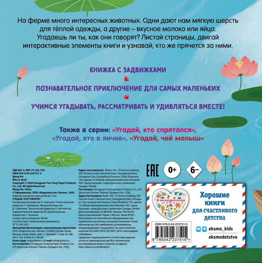 💳 Оплатить за товар можно при получении 🇰🇿 Есть бесплатная доставка по Казахстану от 1 дня 🎁 Копите бонусы с каждой покупки Серия: Книжки-игрушки для малышей Увлекательная книжка-игрушка с двигалками на каждом развороте. Тренируем пальчики, развиваем фантазию и мелкую моторику! Игра начинается прямо с обложки, ведь там находится первая подвижная деталь! Кто говорит хрю-хрю? А кто из обитателей фермы с самого утра будит всех своей громкой песней? Скорее открывайте книжку с задвижками и знакомьтесь с весёлыми домашними животными! |