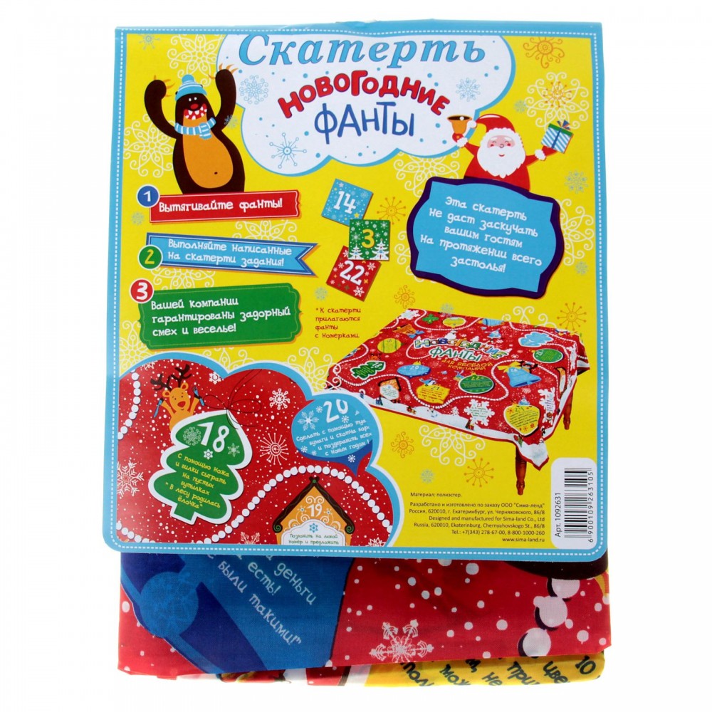 Скатерть два в одном - прекрасное украшение новогоднего стола! Многие фанты очень интересны для исполнения. Описание товара полностью соответствует действительности.