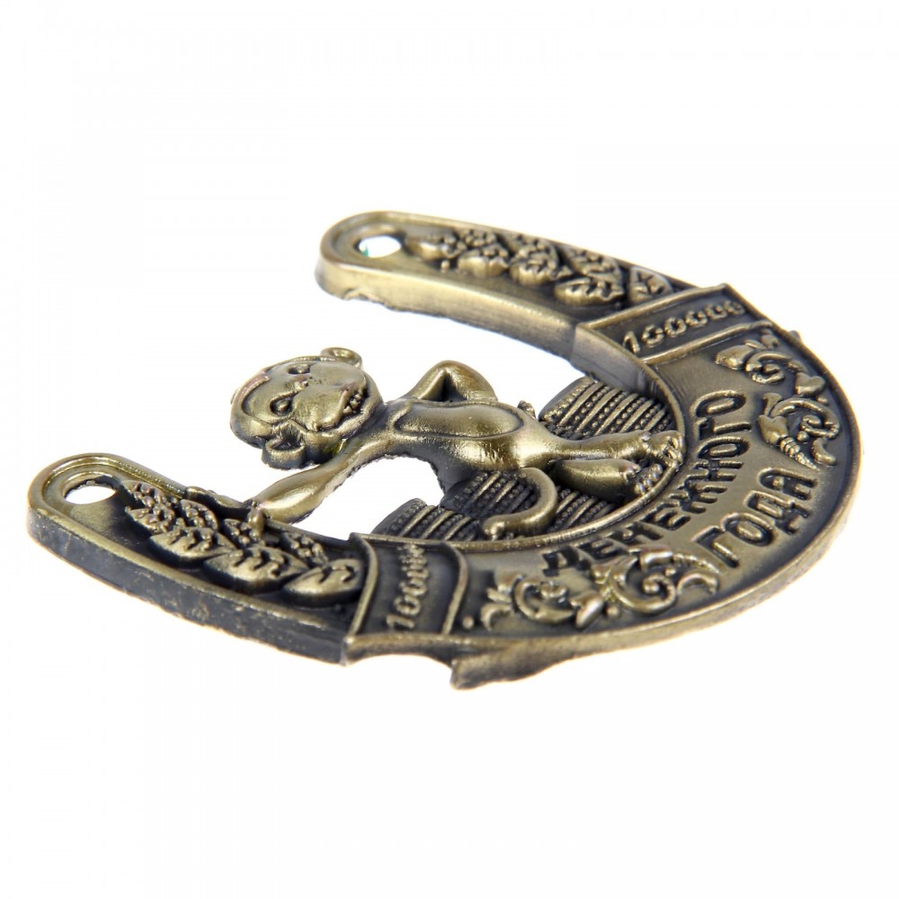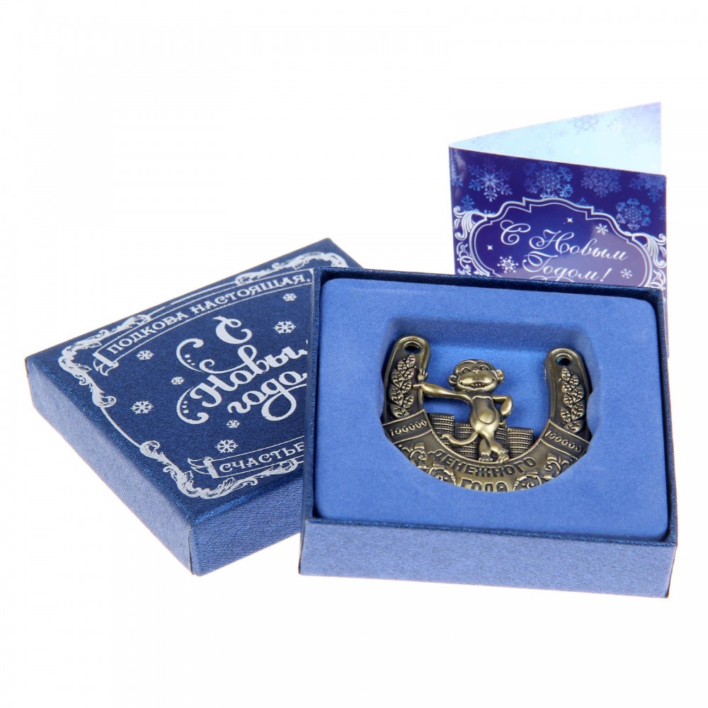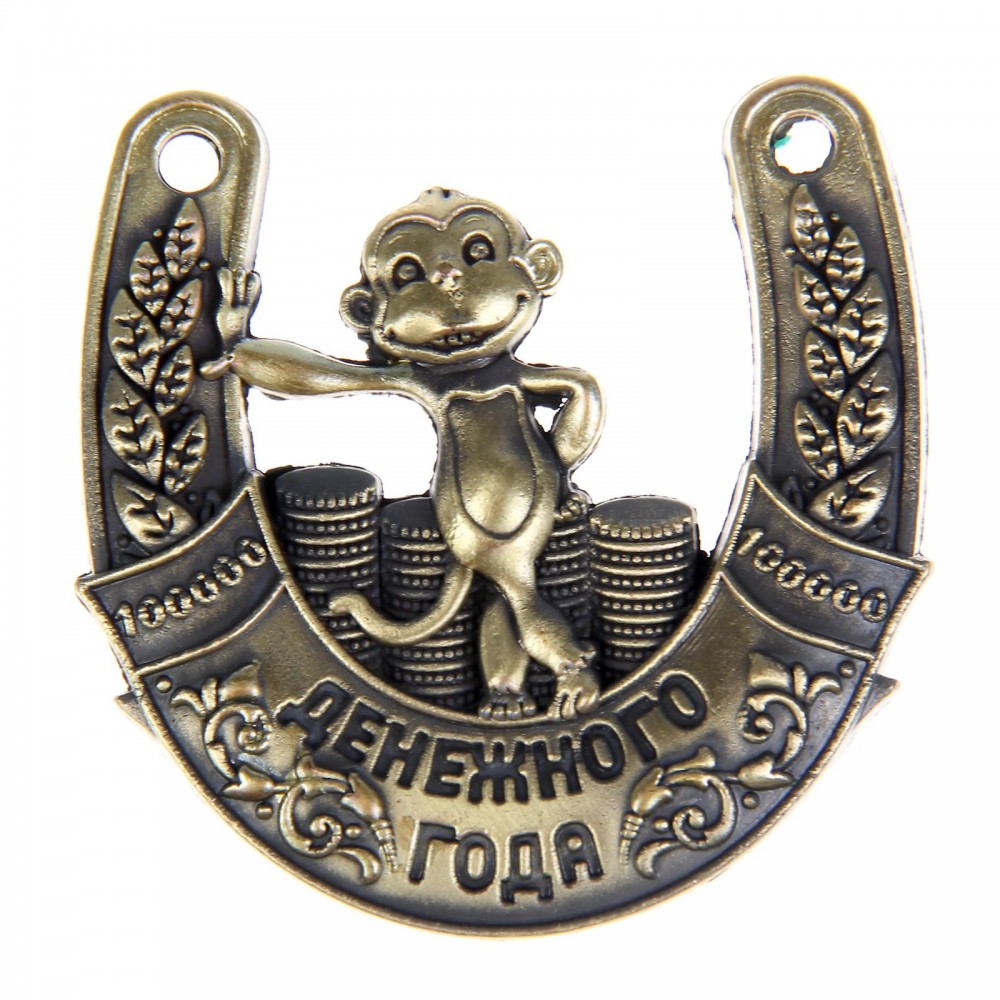 Подкова «Денежного года» с удивительным новогодним дизайном изготовлена из надёжного и долговечного материала — металла. На подкову запрыгнула озорная обезьянка Арнольд — душа компании, зажигательный весельчак и завсегдатай новогодних вечеринок. Арни любит удивлять окружающих экстравагантными поступками и модным внешним видом. Порой он может показаться излишне самовлюблённым и болтливым, но его лёгкий характер, обаятельная улыбка и дружелюбие искупают все его недостатки.