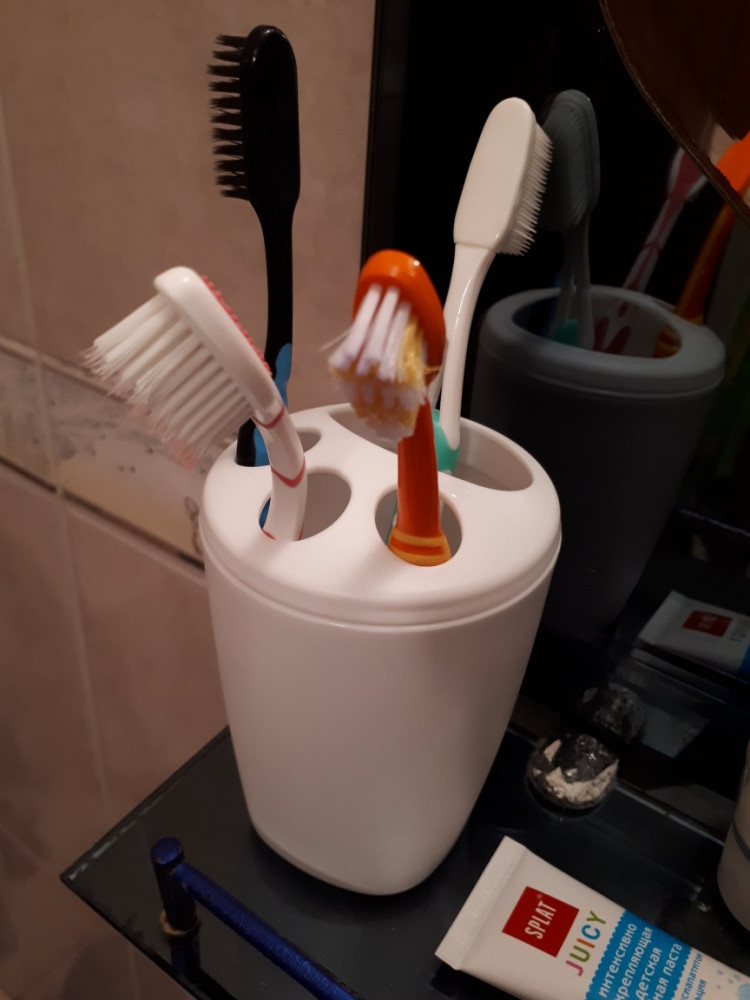 Отличный подстаканник для зуб. щёток! Прекрасно вписался в нашу ванную комнату.