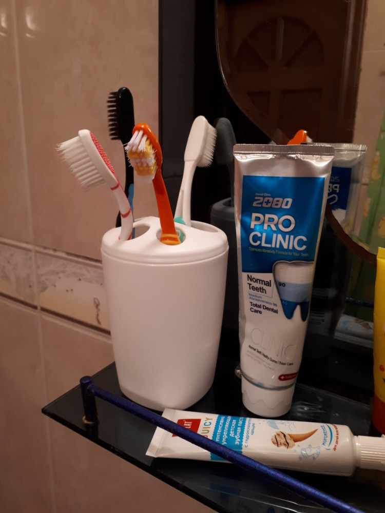 Отличная подставка! Цвет действительно, как и в описание снежно-белый, компактная, удобная и цена приемлемая! Поместились 3 зубные щетки 2 зубные пасты.