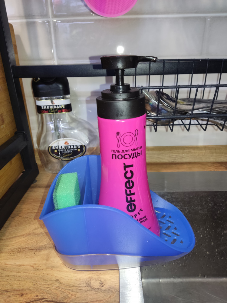 Просто отличная подставка для моющего!!! Хороший пластик!!! По цвету вписалась в мою "веселенькую"кухню!!!)))