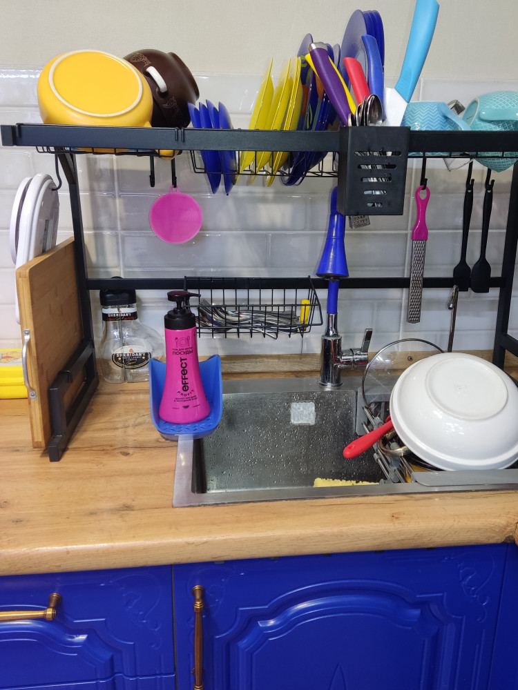 Подставка удобная, хорошо выполнена. К подставке прилагается губка для мытья посуды. Но на мой взгляд, завышена цена, поэтому 4 звездочки.