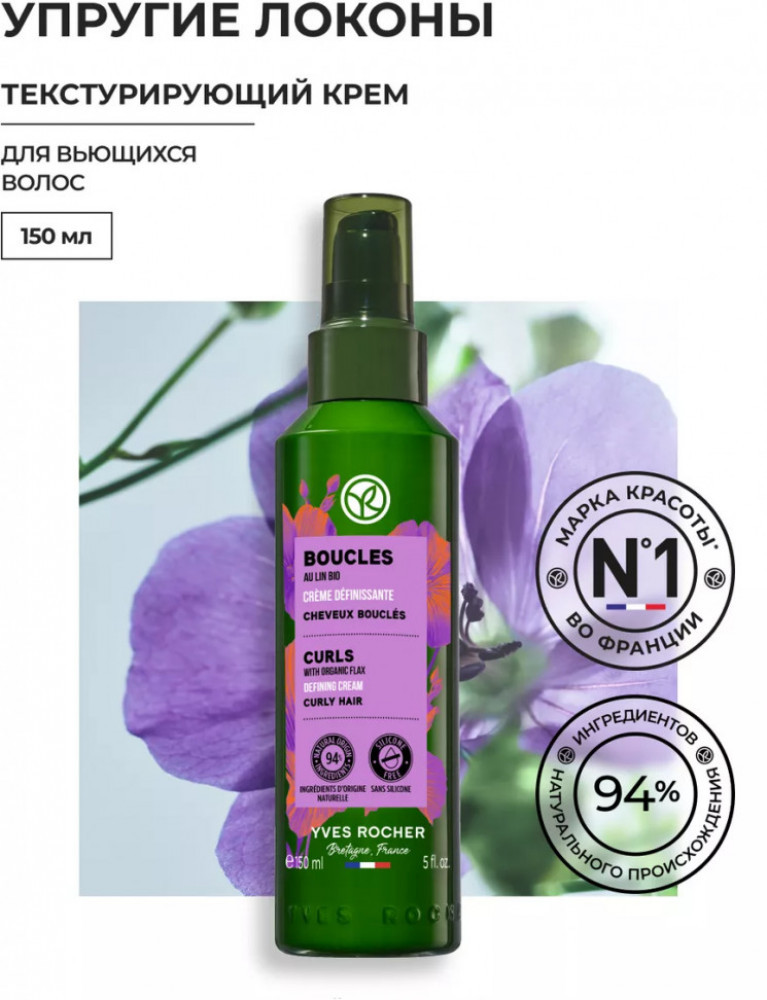 Yves Rocher Крем для вьющихся волос текстурирующий со льном Био «Упругие локоны»+48