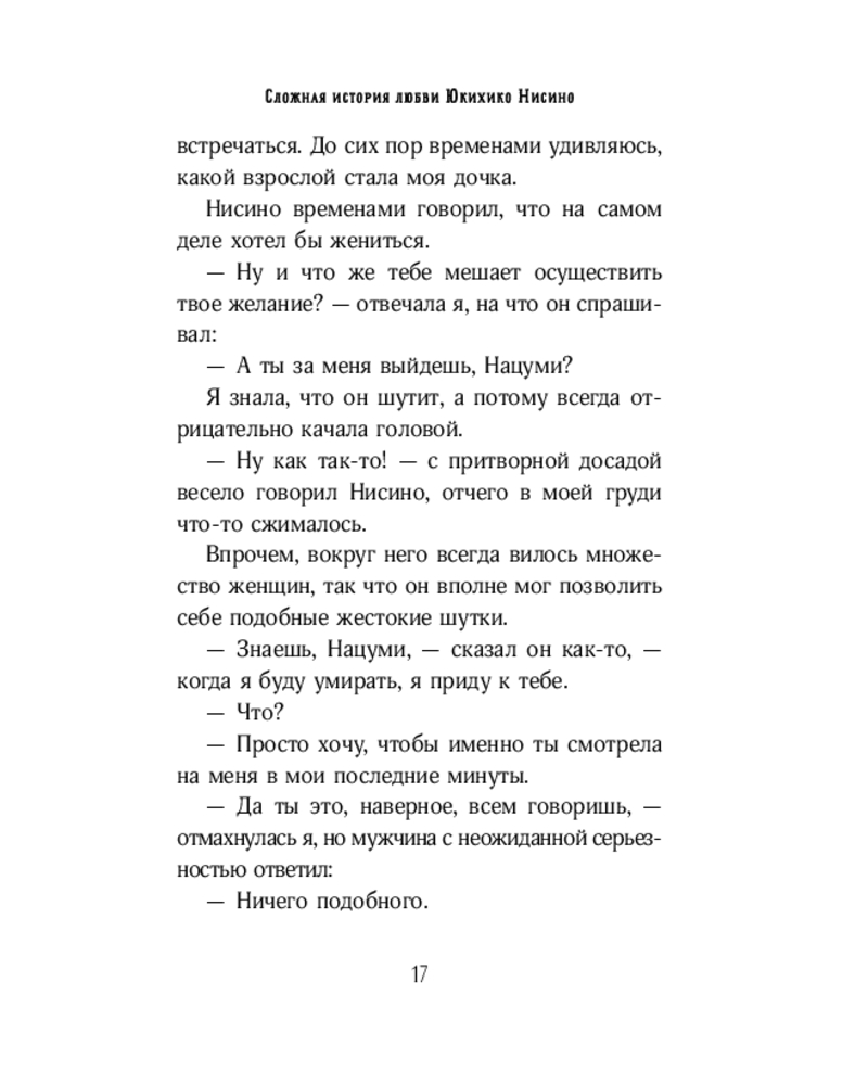 💳 Оплатить за товар можно при получении 🇰🇿 Есть бесплатная доставка по Казахстану от 1 дня 🎁 Копите бонусы с каждой покупки Серия: Погода в Токио Юкихико Нисино — обаятельный мужчина, который всегда каким-то непостижимым образом привлекал множество женщин, оставляя им яркие воспоминания и неразрешенные вопросы после разрыва отношений. Свою историю рассказывают десять женщин, которые любили Нисино или были с ним в отношениях. Для каждой из них остается загадкой, почему же Нисино не смог по-настоящему полюбить ни одну из них. Может быть, он не способен любить? А может быть, он боялся отдать кому-то свое сердце без остатка? Или ему просто нравится одиночество? |