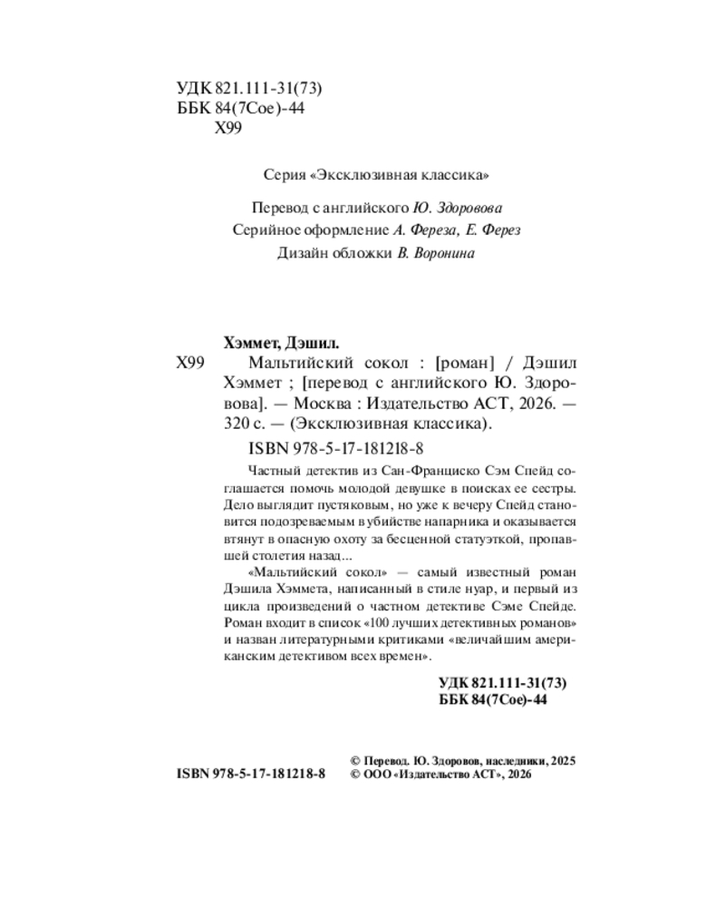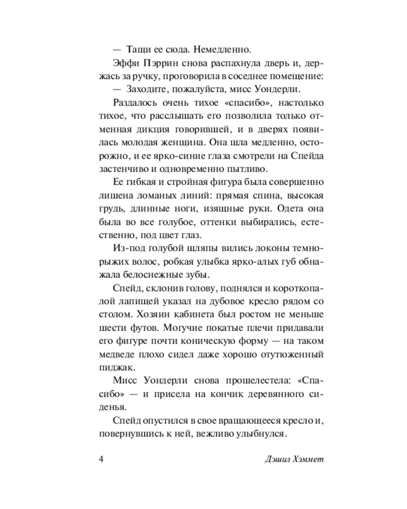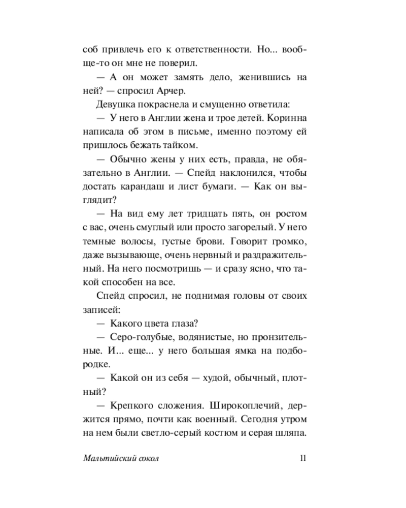 💳 Оплатить за товар можно при получении 🇰🇿 Есть бесплатная доставка по Казахстану от 1 дня 🎁 Копите бонусы с каждой покупки Серия: Эксклюзивная классика Частный детектив из Сан-Франциско Сэм Спейд соглашается помочь молодой девушке в поисках ее сестры. Дело выглядит пустяковым, но уже к вечеру Спейд становится подозреваемым в убийстве напарника и оказывается втянут в опасную охоту за бесценной статуэткой, пропавшей столетия назад… |
