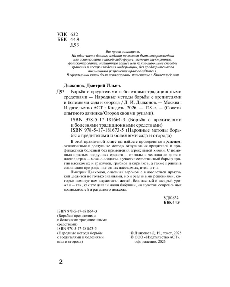 💳 Оплатить за товар можно при получении 🇰🇿 Есть бесплатная доставка по Казахстану от 1 дня 🎁 Копите бонусы с каждой покупки Серия: Огород своими руками В этой практичной книге вы найдете проверенные временем, экологичные и доступные методы отпугивания вредителей и профилактики болезней без применения агрессивной химии. С помощью простых подручных средств — от золы и чеснока до дегтя и настоев трав — можно создать на участке естественный барьер против насекомых и грызунов, грибков и сорняков, а также привлечь союзников природы: полезных насекомых, птиц и т.д. |