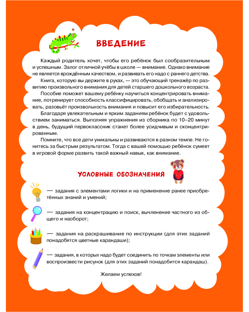 💳 Оплатить за товар можно при получении 🇰🇿 Есть бесплатная доставка по Казахстану от 1 дня 🎁 Копите бонусы с каждой покупки Серия: За пять шагов до школы Современная школа предъявляет очень высокие требования к детям, которые поступают в 1 класс, поэтому дошкольная подготовка является важнейшим этапом для успешного старта. Эта развивашка, предназначенная для детей 5, 6, 7 лет, поможет ребенку научиться произвольно фокусировать внимание. Каждая страница тренажера предлагает множество интересных и разнообразных упражнений, которые помогут развить логическое мышление и познавательные способности, закрепить и потренировать мелкую моторику. |