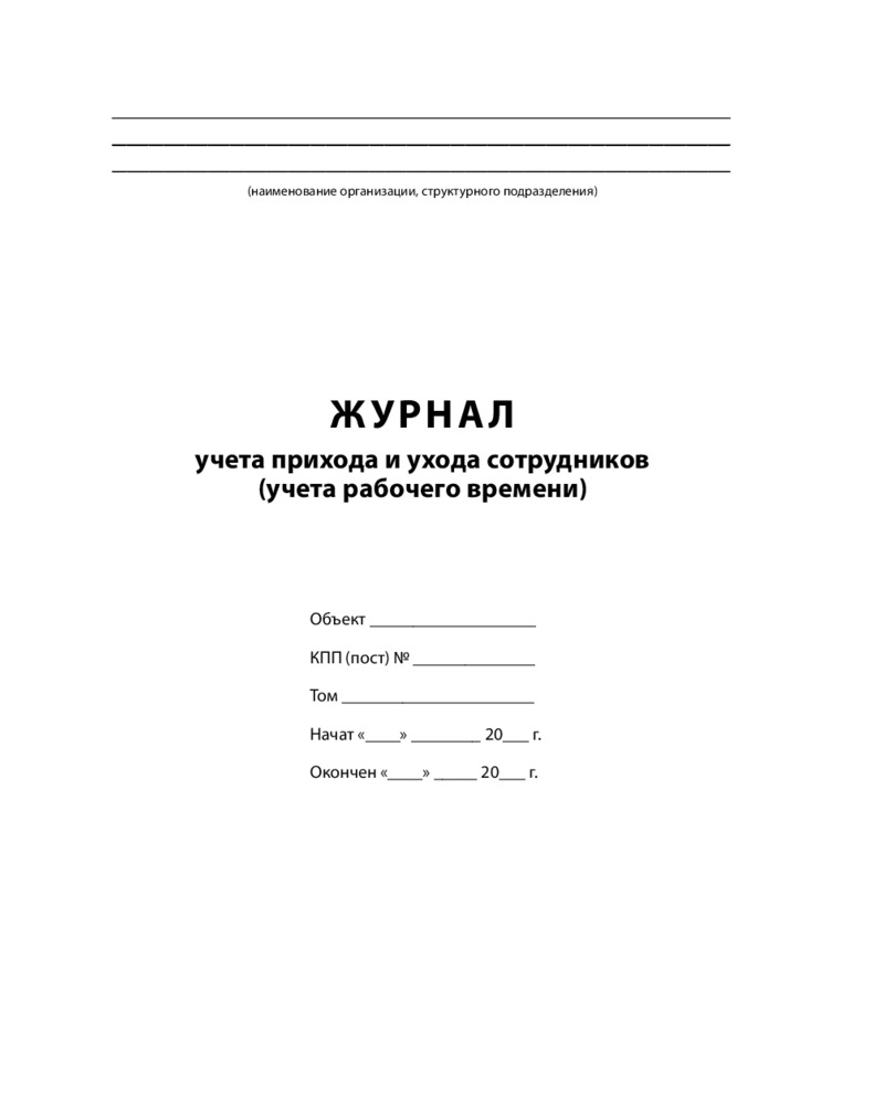 Журнал прихода и ухода сотрудников (учёта рабочего времени)-20% +15